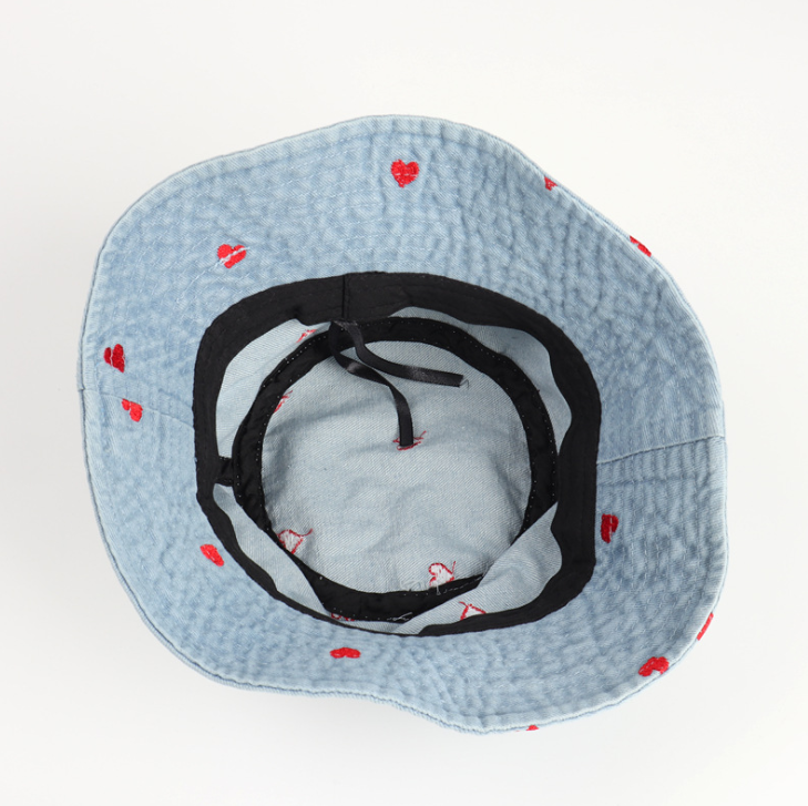 Fashion Denim Love Embroidered Bucket Hat