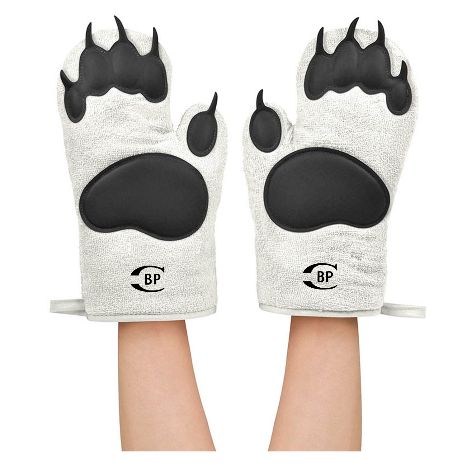 It made from cotton and silicone.These quirky oven mitts are a perfect addition to any kitchen and sure to make you smile!