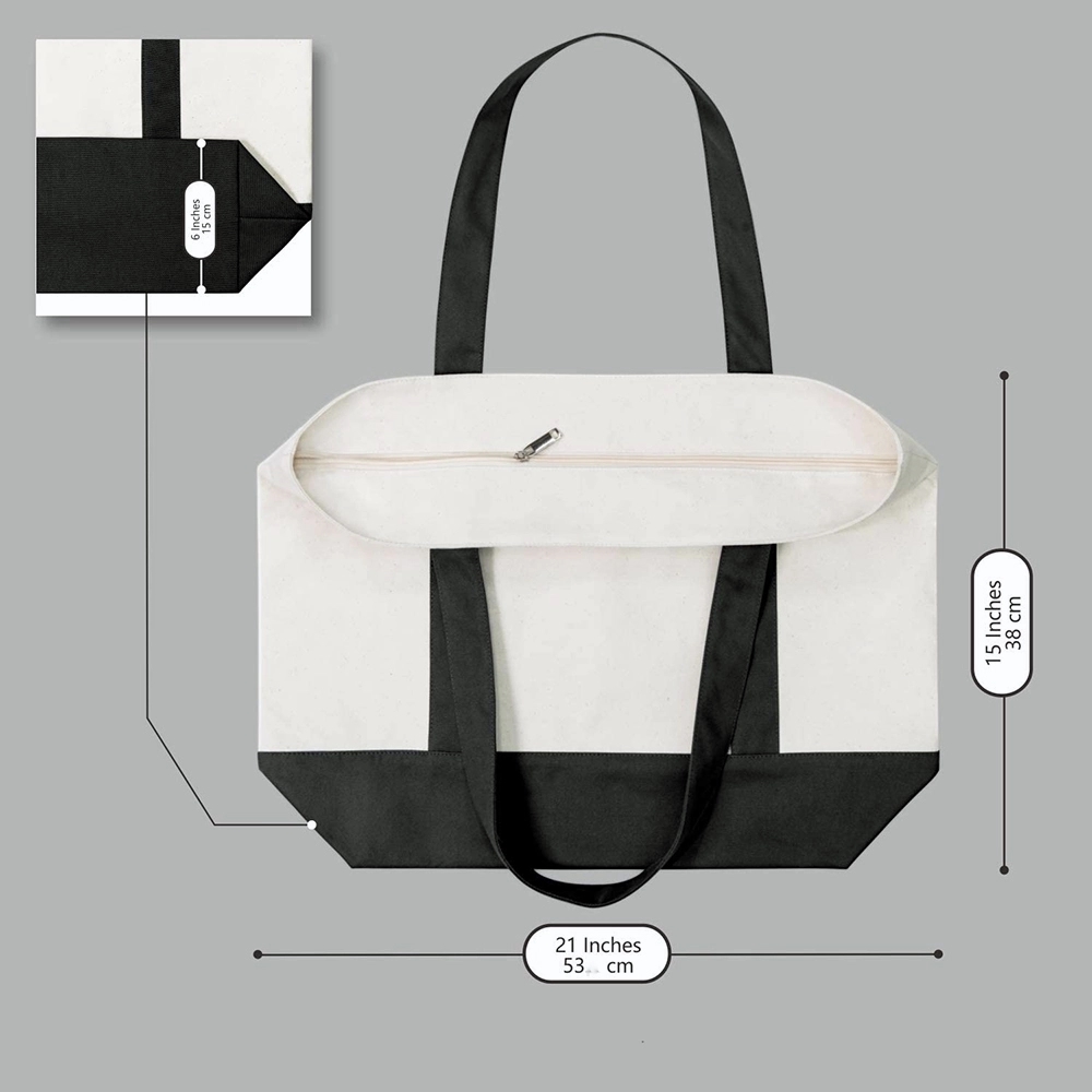 Large canvas tote bag with a handle and zippered main compartment.