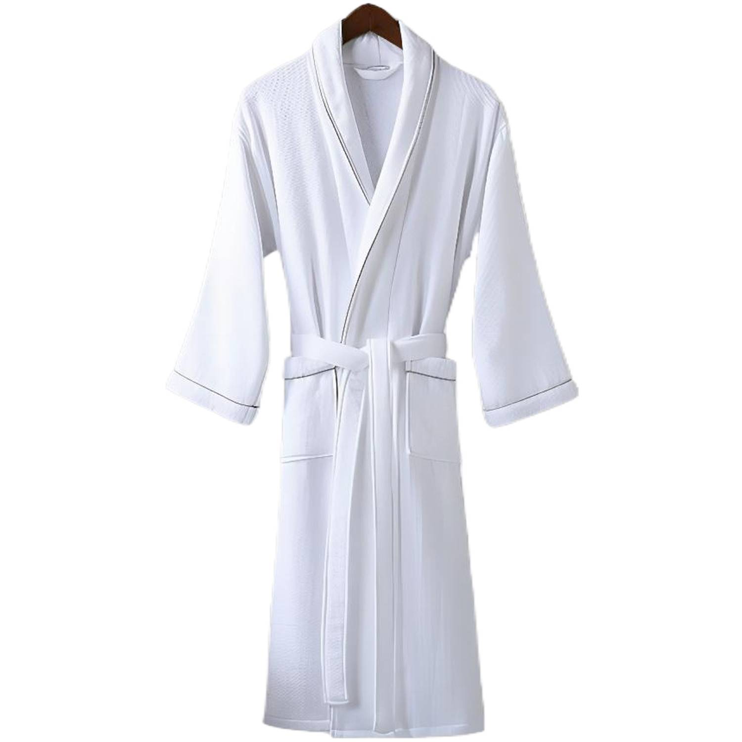 Breathable long cotton bathrobe with pockets. Lightweight, absorbent, and perfect for spa, pool, or home lounging.