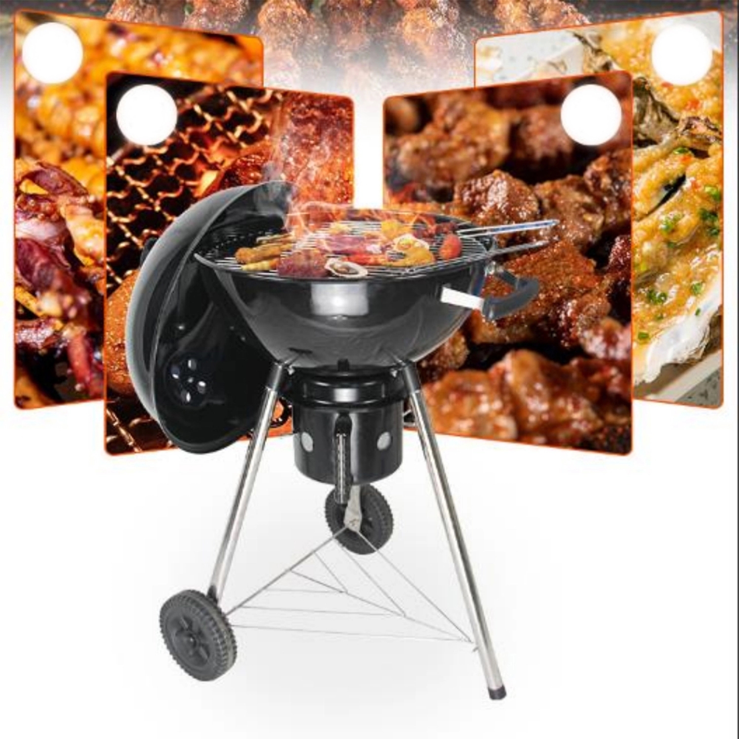 Our grill has a metal body, easy to clean design, pull-up cover and ventilation on 4 sides.