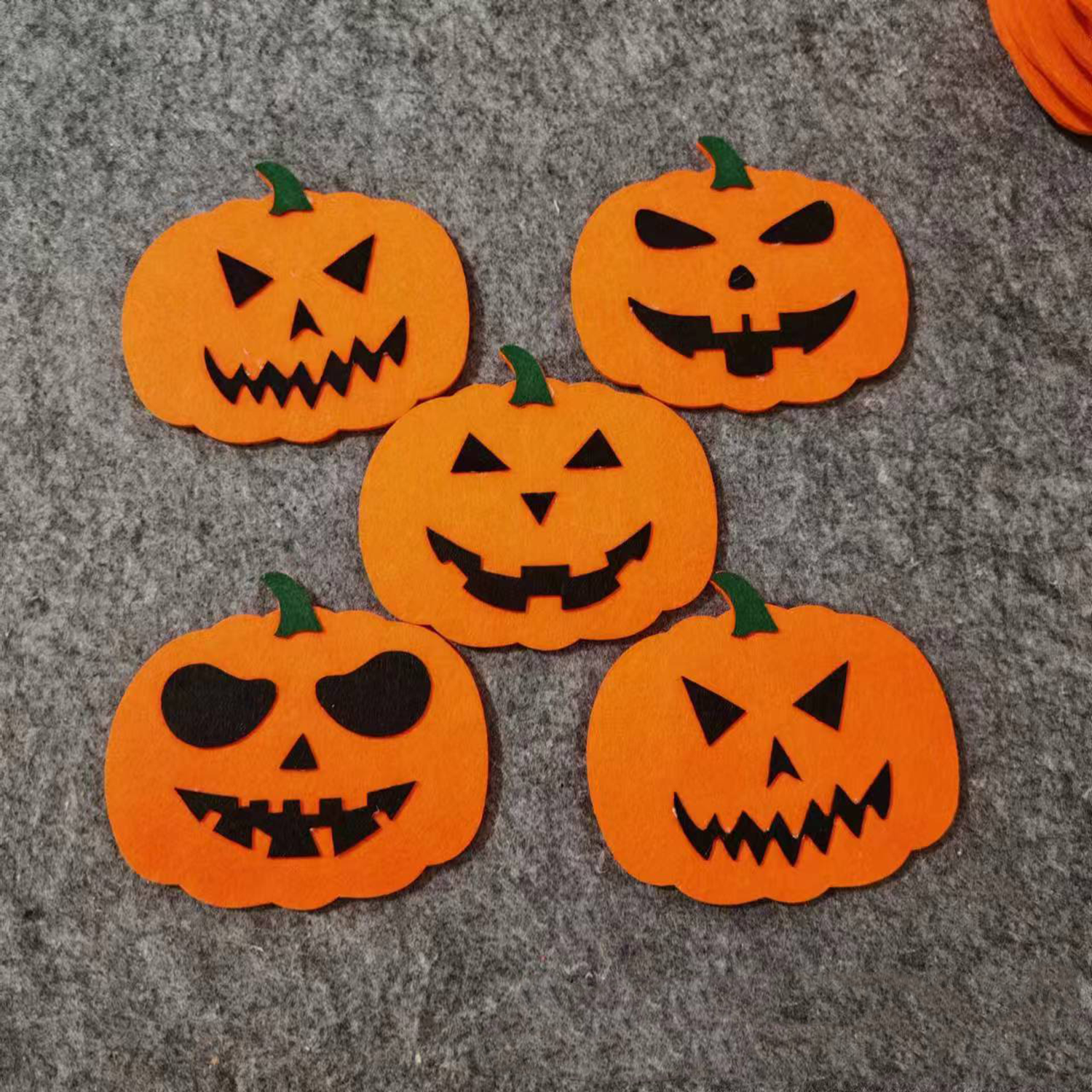 Halloween Felt Pumpkin Coasters – Orange, Anti-Slip, Heat-Resistant, Monster Beverage Mats for a Festive Party