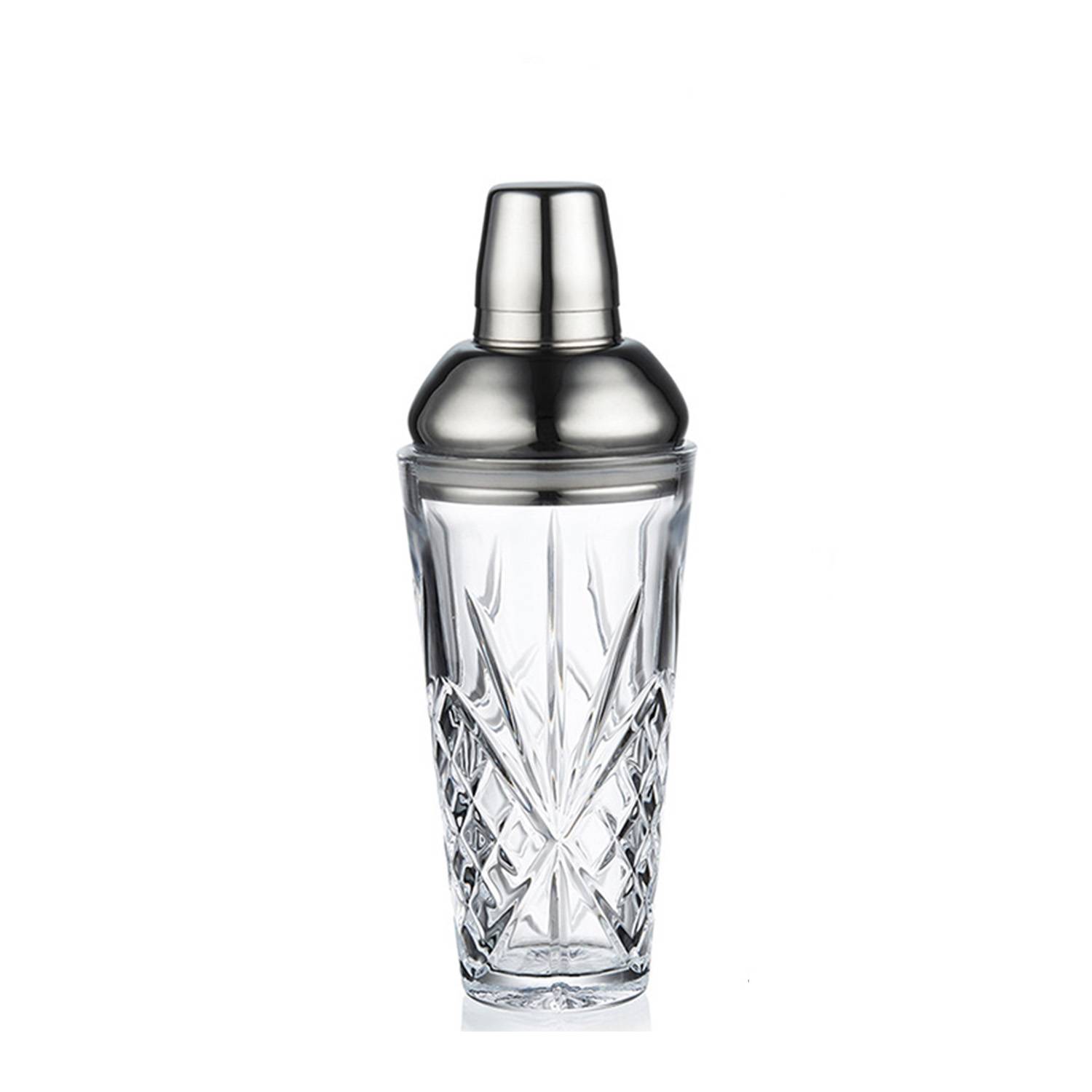 The Glass Shaker is a durable crystal shaker with a 16oz capacity, ideal for secure mixing at home or bars.