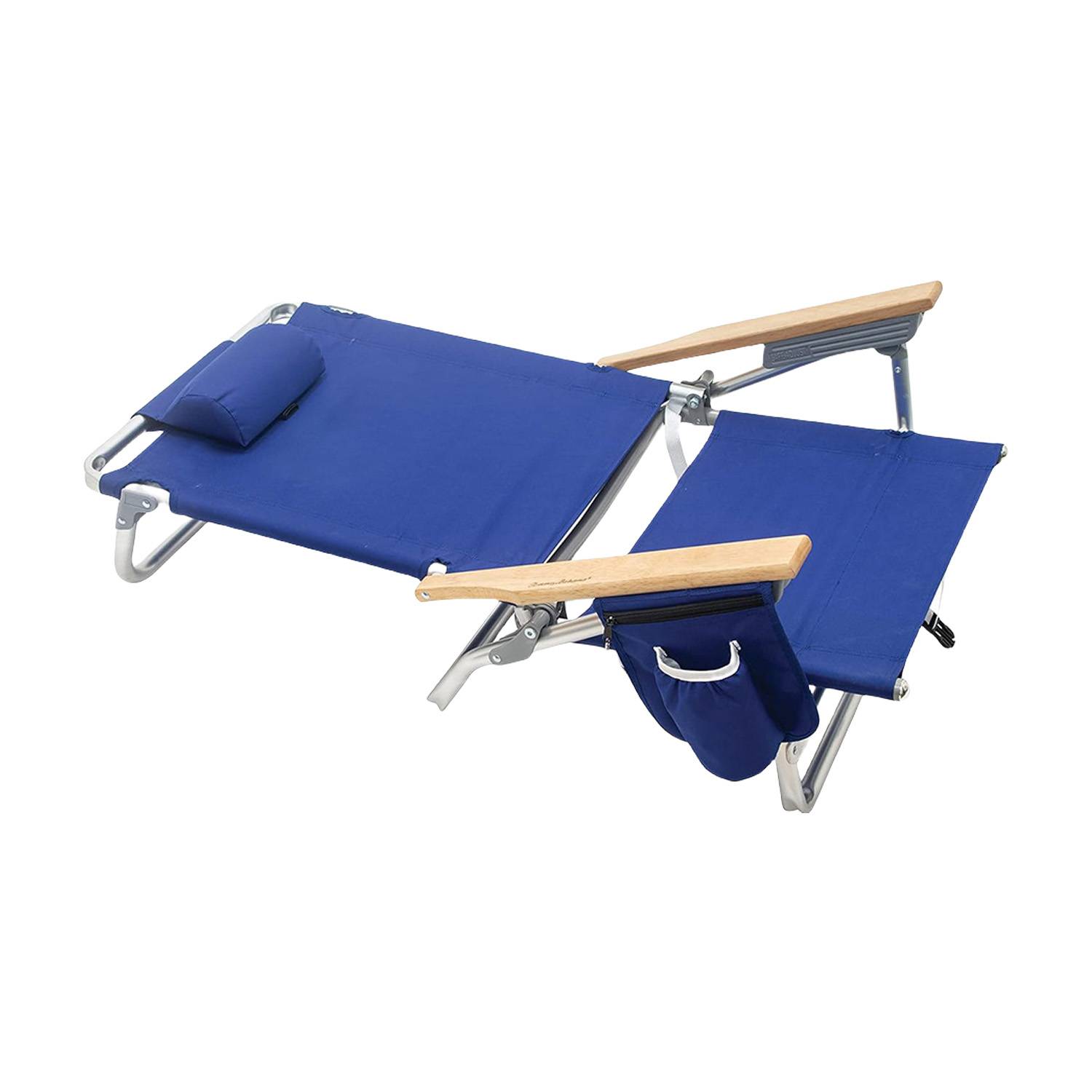 5-position Aluminum beach chair with 330 lbs capacity, tear-resistant Oxford, backpack straps, cup holder.