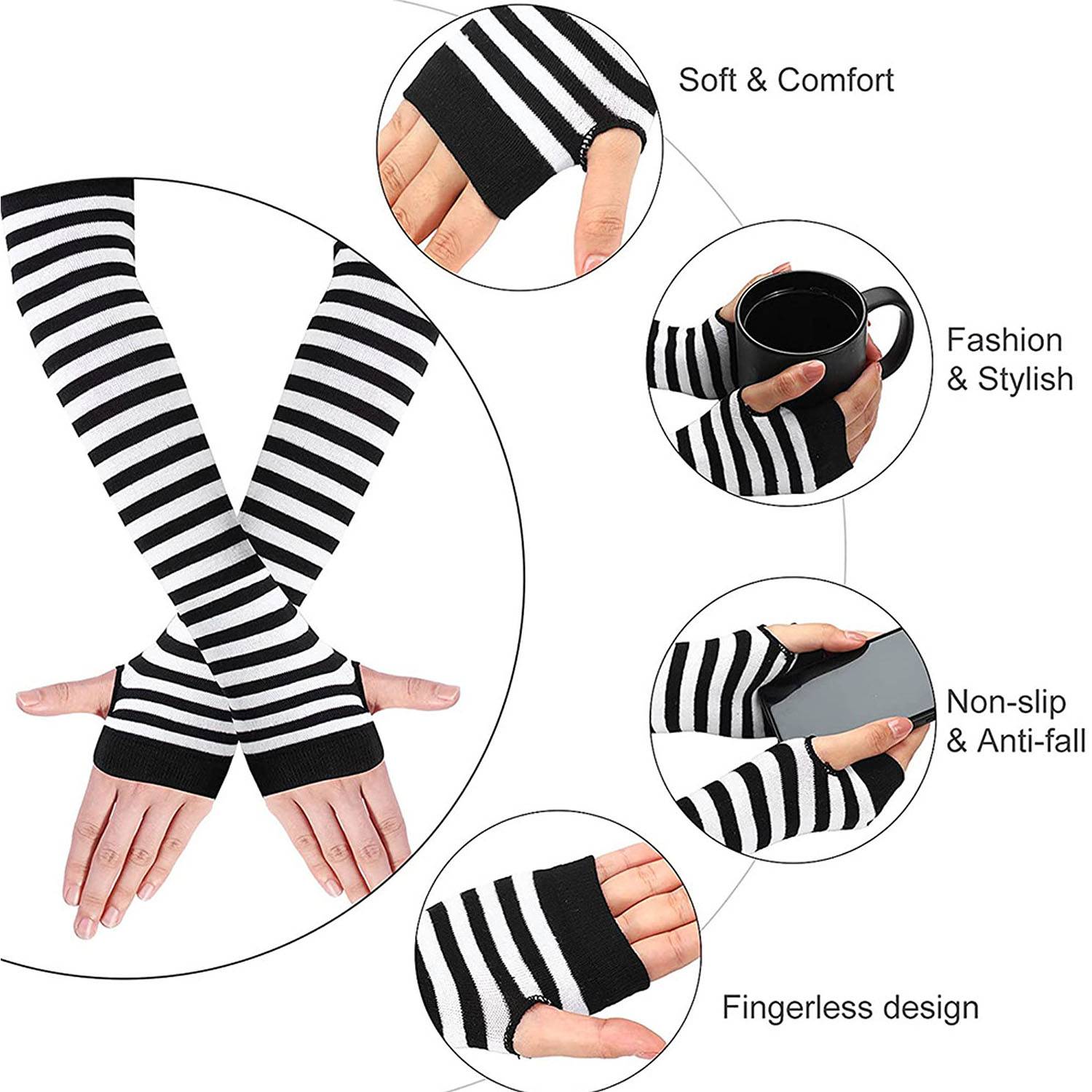 Knit fingerless gloves with a skeleton bone design. Perfect for Halloween costumes or daily use, allowing finger dexterity.