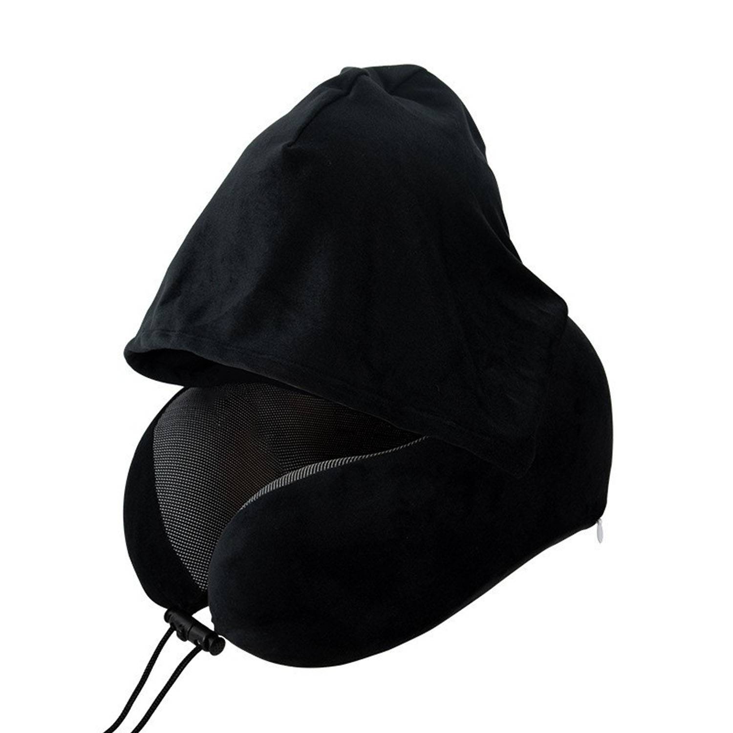 Hooded Memory Foam U Shaped Travel Neck Pillow