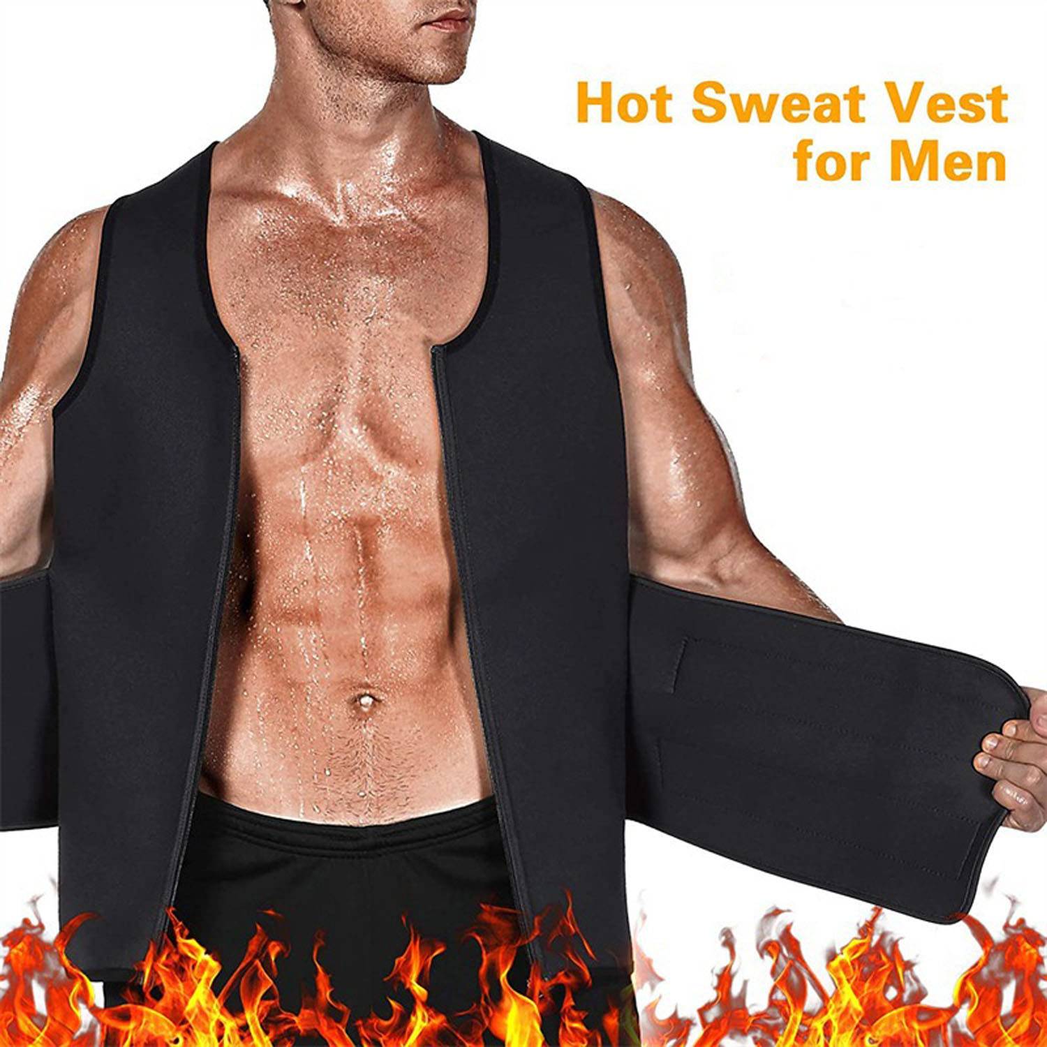 Neoprene shaper vest boosts sweat, flattens tummy, burns back fat; keeps you dry outside. Great for gym, home, or daily wear.