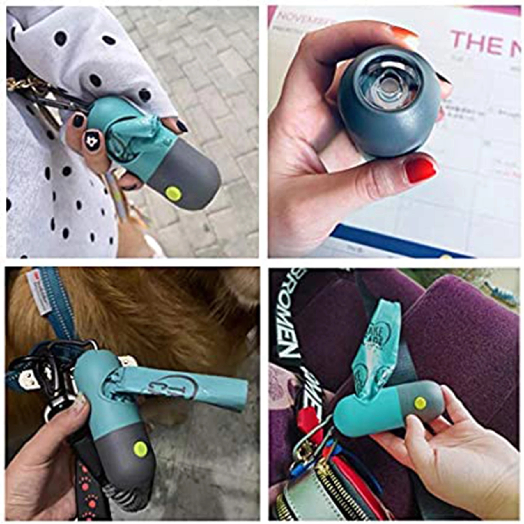 Our dog poop bag dispenser has a bright built-in LED flashlight,you could hang the bag holder anywhere.