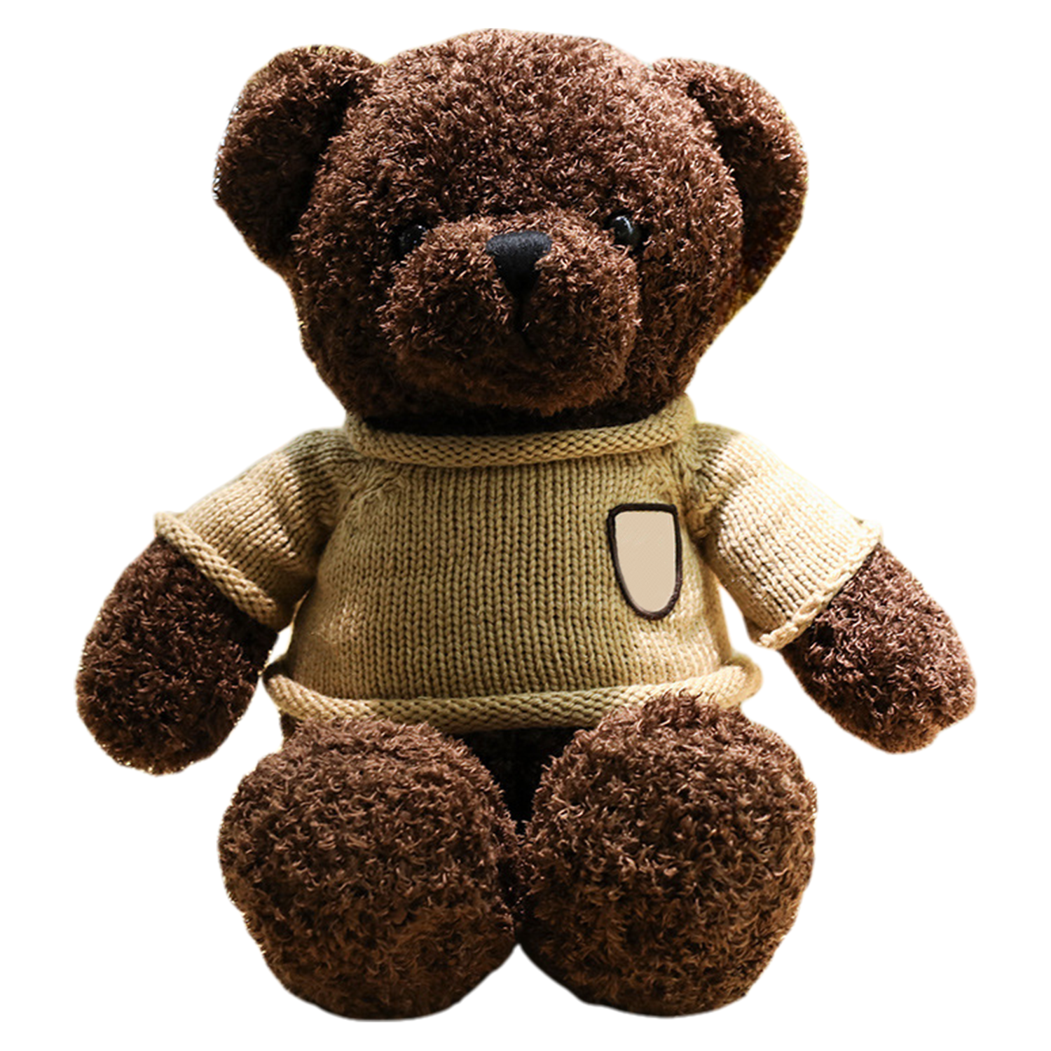 A plush bear doll featuring a removable knit sweater. Stuffed with soft PP cotton, it’s a cuddly companion for display or gift.