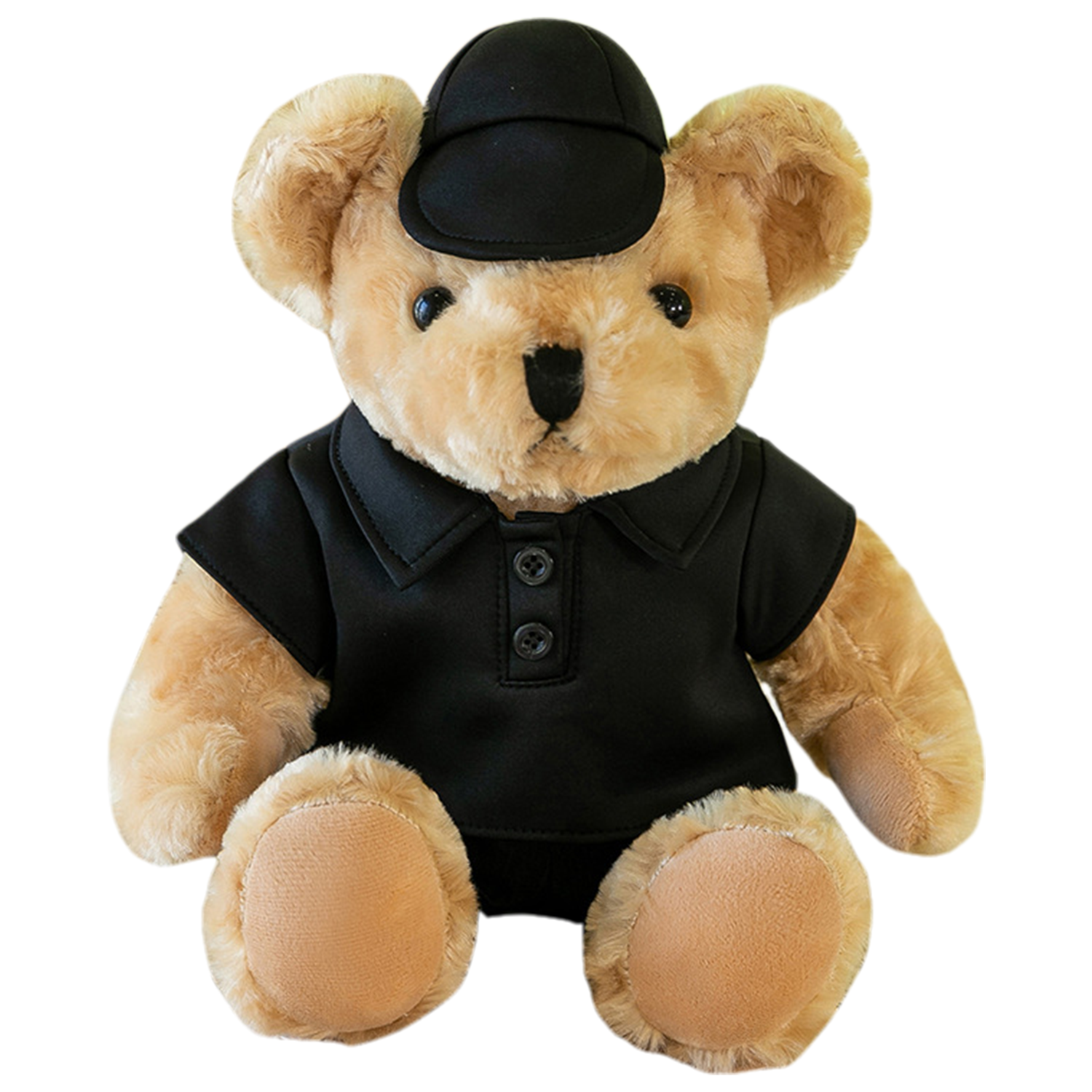 A plush bear doll in a polo shirt with removable clothes. Made from soft PP cotton, it is a huggable companion for play or gift.