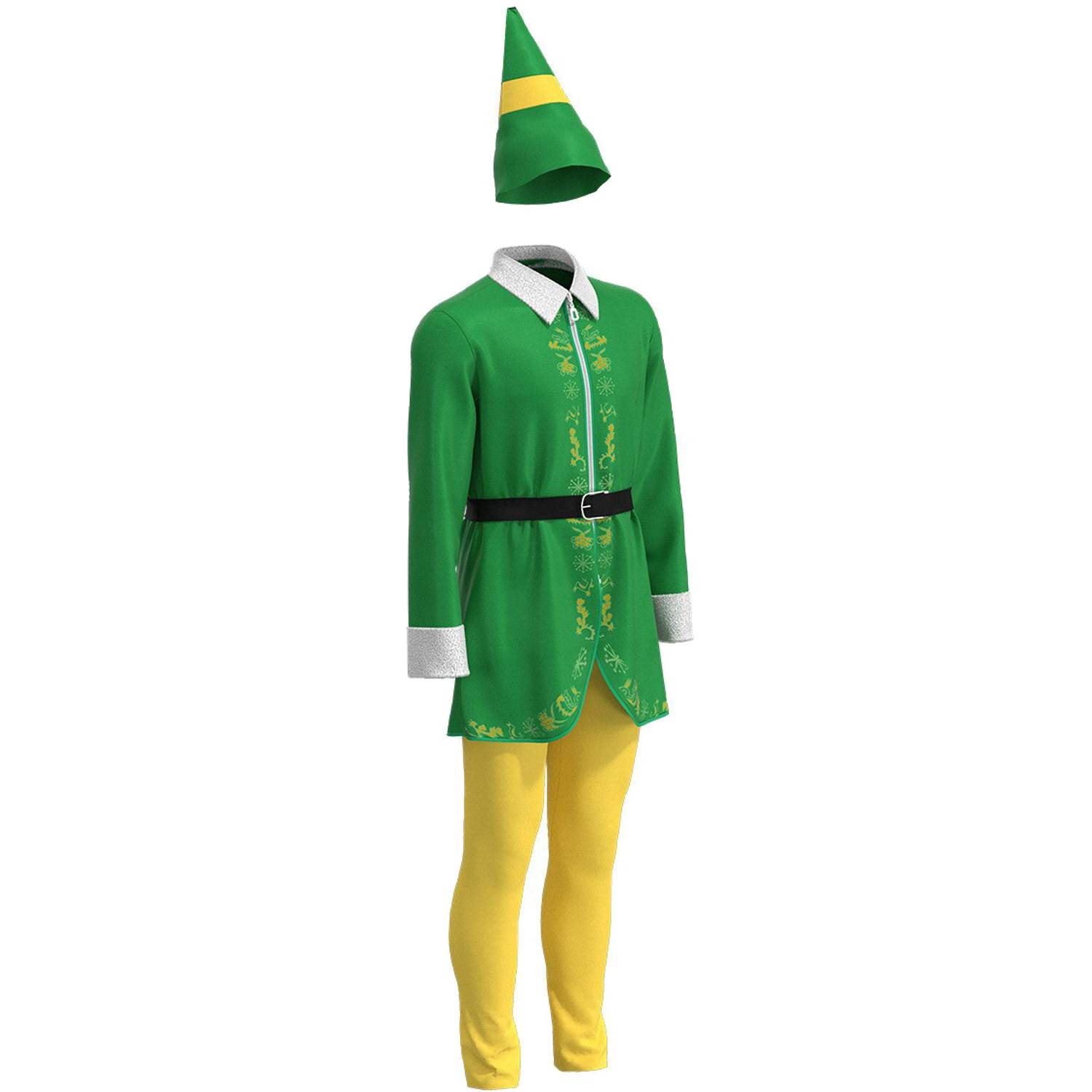 Complete green spandex elf costume set with 5 pieces, perfect for Christmas parties, cosplay, and family events for all ages.