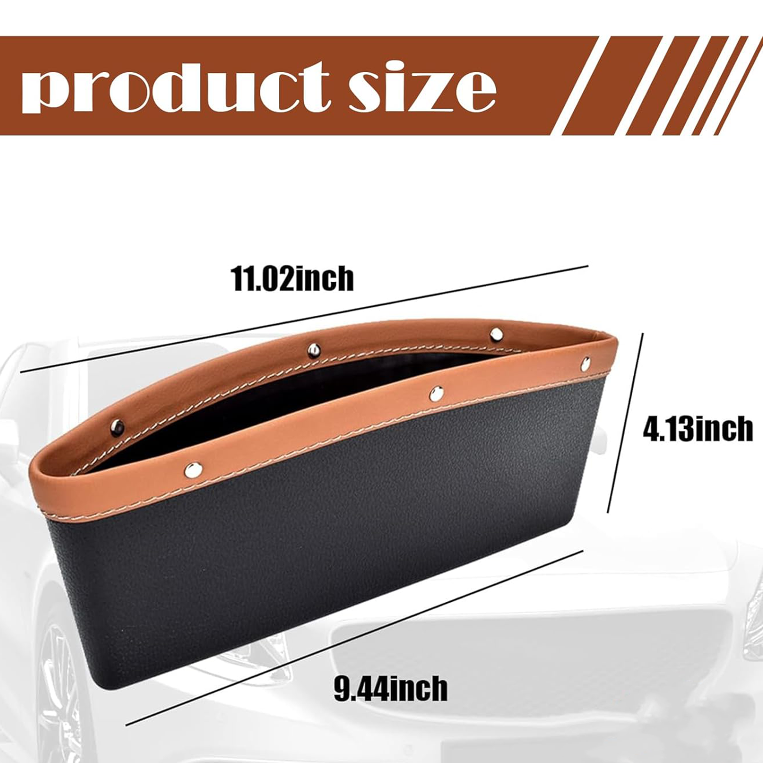 Leather storage bag fits car seat gaps for convenient organization of essentials, universal in size, and easy to clean.