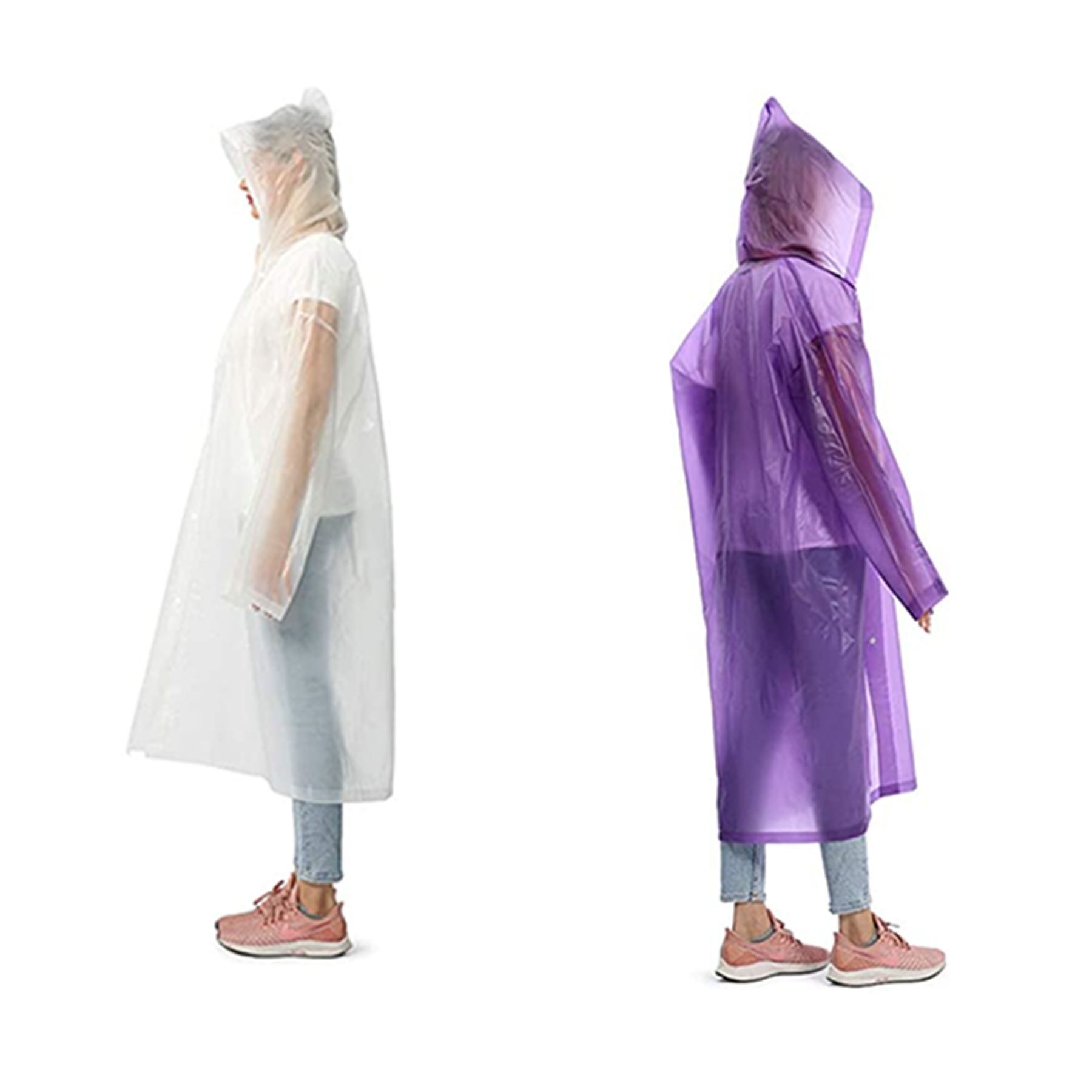 Reusable adult raincoat made of waterproof EVA material for protecting your clothes during a downpour.