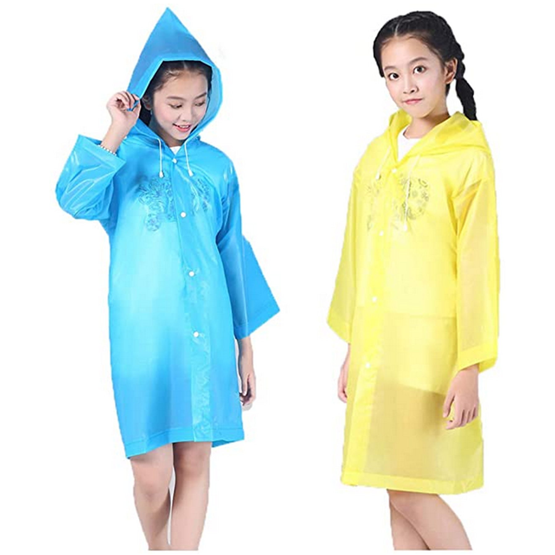 Reusable kids raincoat made of waterproof EVA material for protecting your clothes during a downpour.