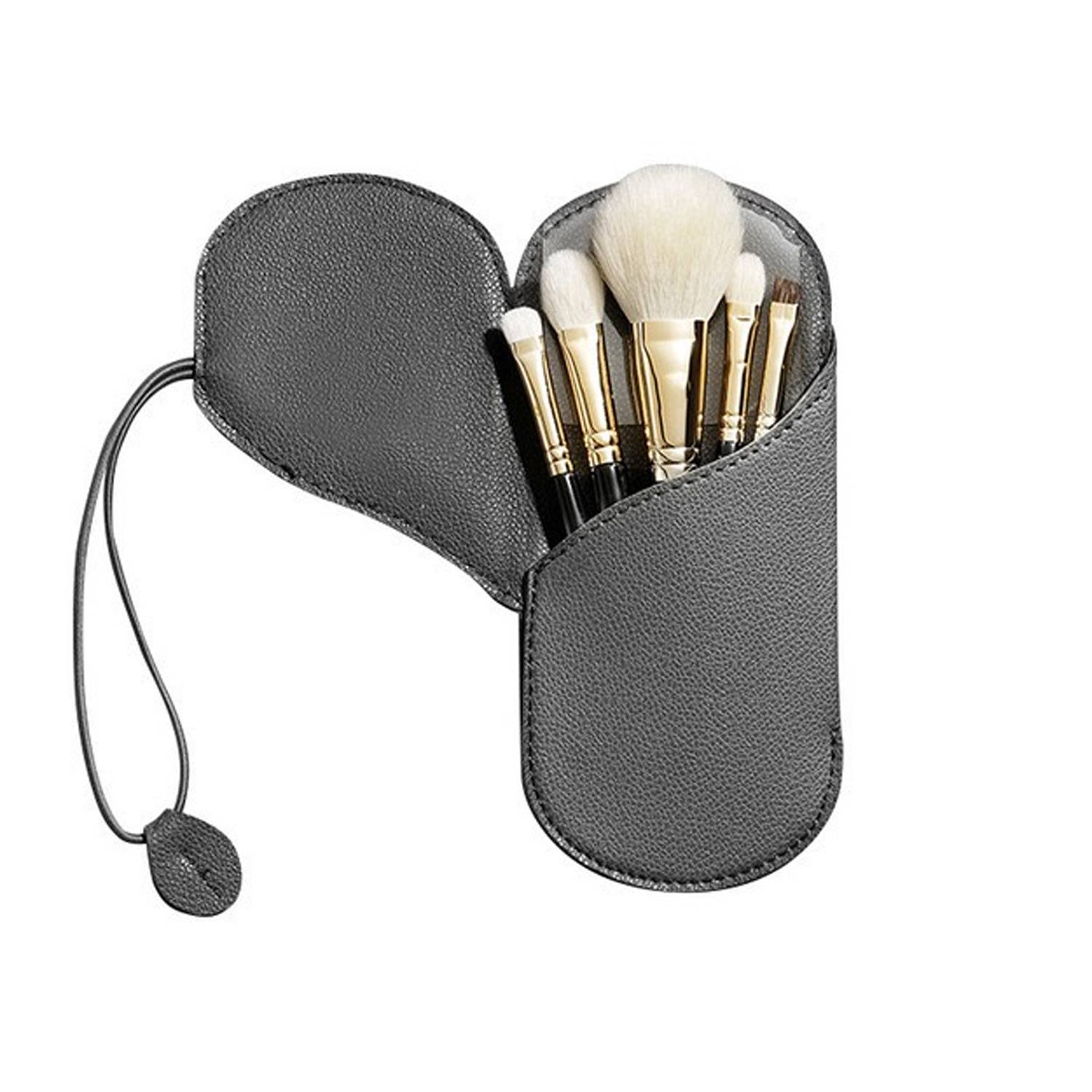PU leather makeup brush Holder (6.7×3.1in), water-resistant. Multiple slots, rope buckle. Soft lining protects brushes,for travel.