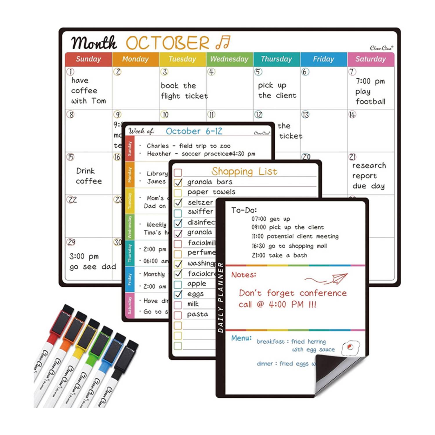 PVC Reusable Whiteboard Calendar Planner Fridge Magnets