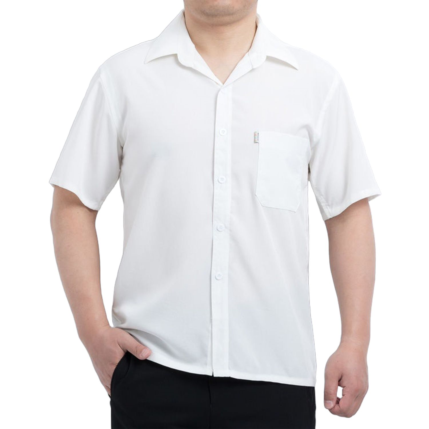 Lightweight button-up shirt, breathable fabric, short sleeves, casual fit, perfect for summer outings or vacations.
