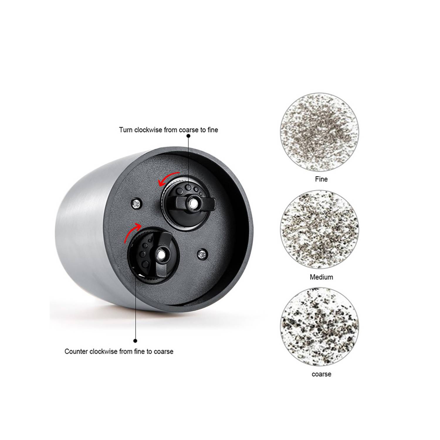 Manual stainless steel pepper grinder with adjustable coarseness. Durable, rust-resistant, and perfect for kitchens or BBQs.