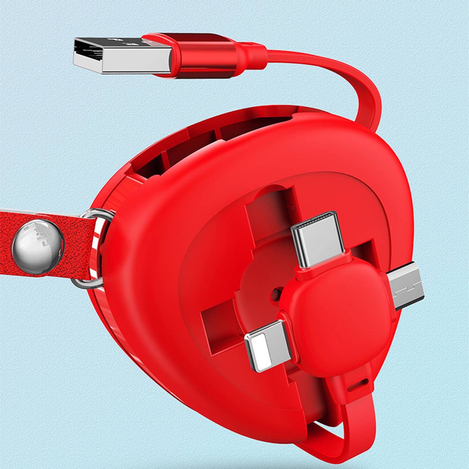 3-in-1 retractable multi-functional multi-terminal charging cable that provides portable and fast charging.