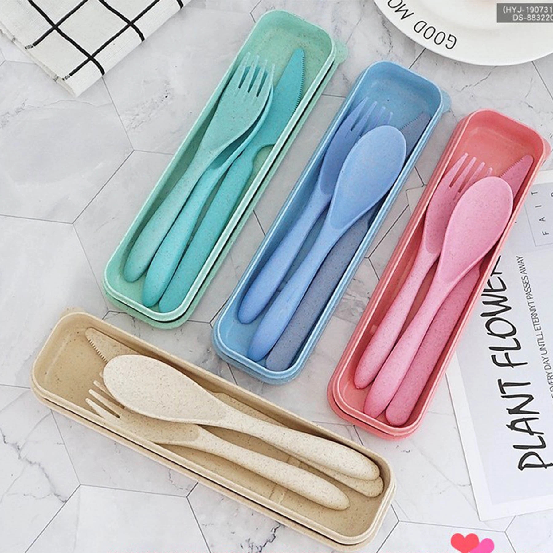 Each cutlery case set is included one fork, one spoon, and one knife. The wheat cultley is made of healthy Wheat straw material, m