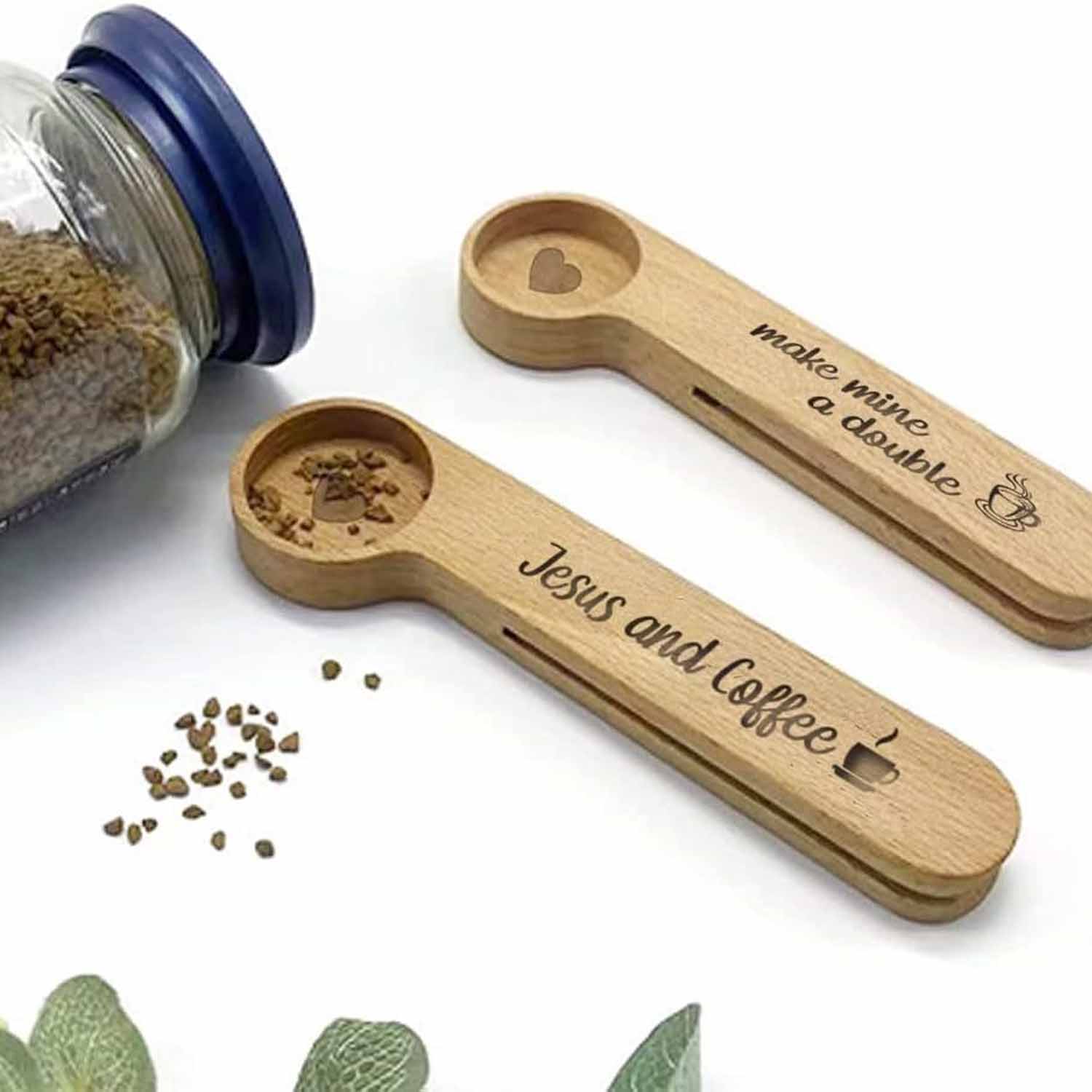 Measuring spoons of coffee beans wooden