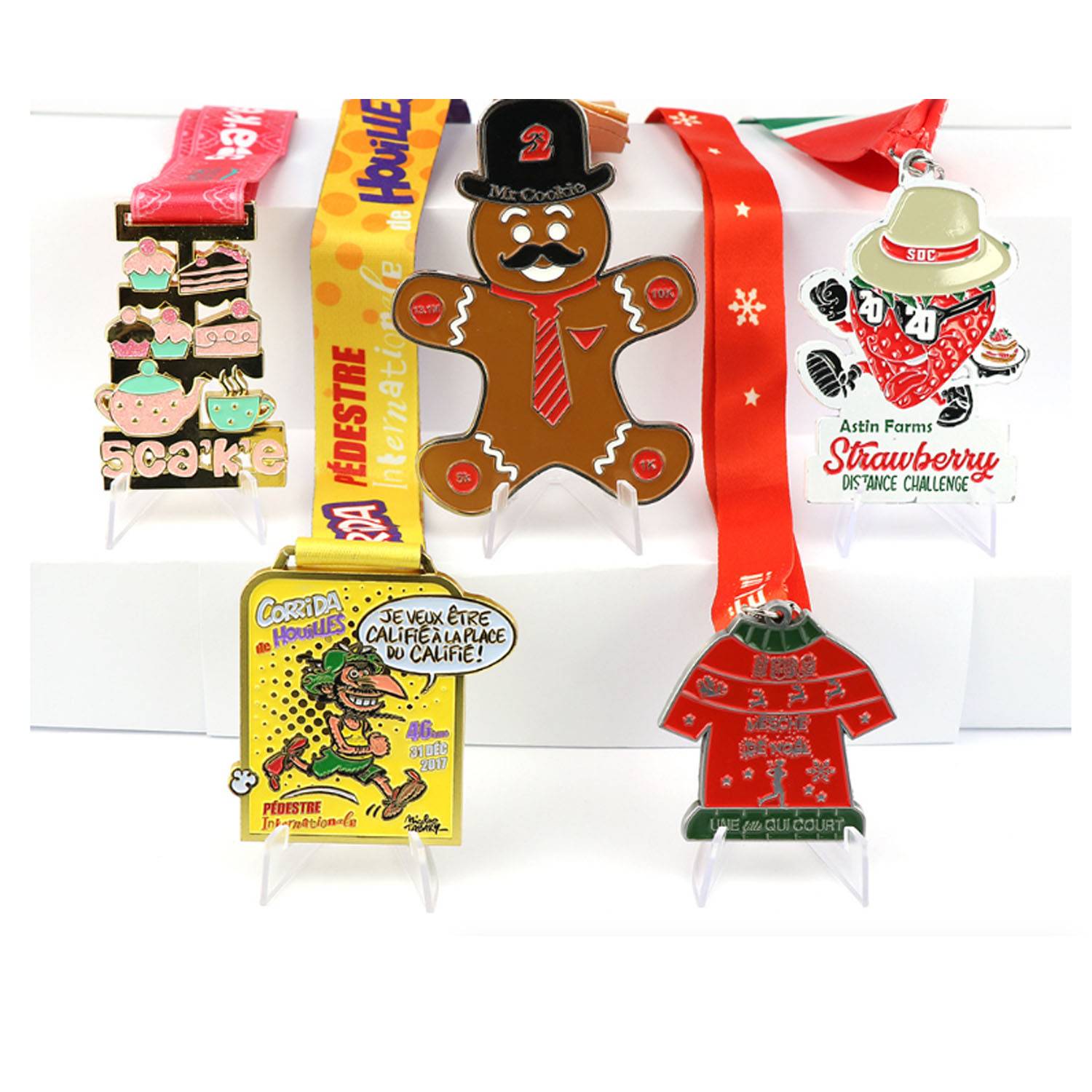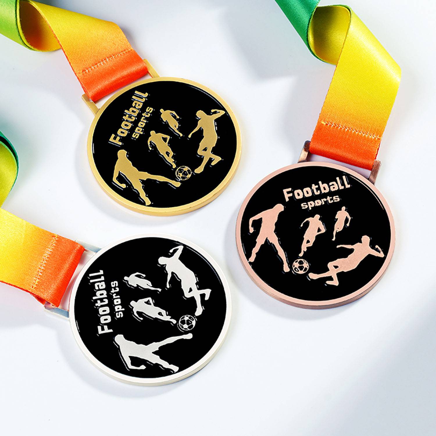 Celebrate athletic achievements with customizable metal medals featuring vibrant ribbons, personal text, or your logo.