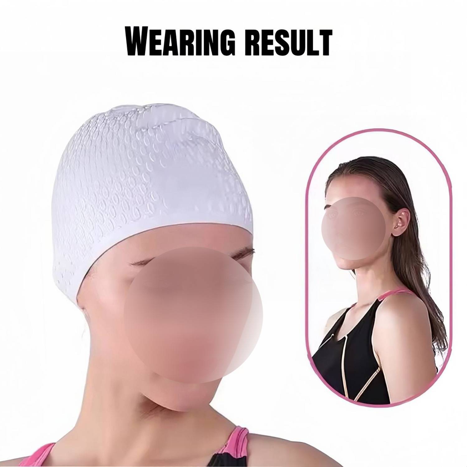 Hydrodynamic water drop silicone swim cap with raised spots.High-elastic,waterproof,blocks chlorine,protects hair/ears.