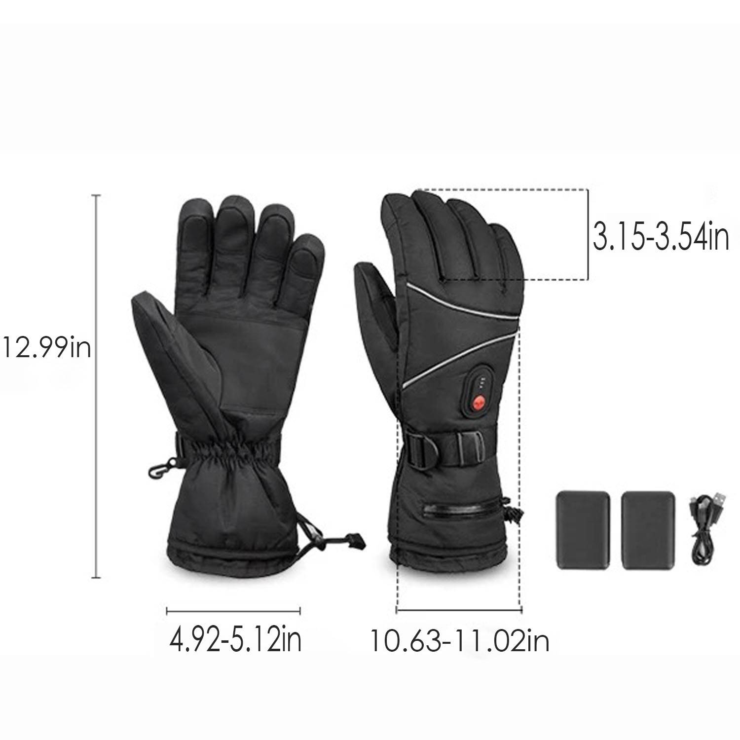 Heated gloves for outdoor activities. Nylon, snug fit, wear-resistant, touch screen compatible, three heating modes.