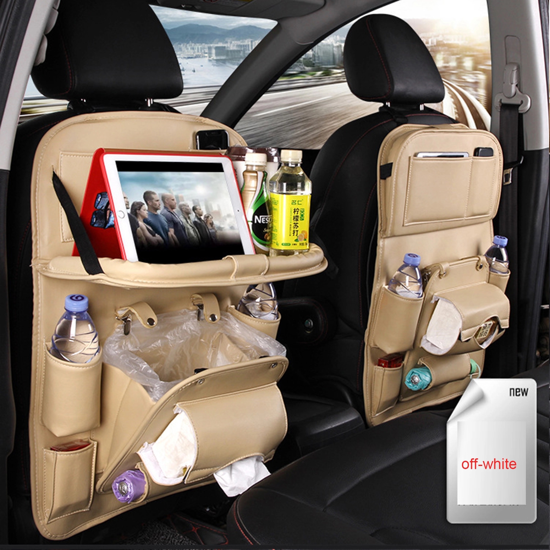 Car Backseat Storage Organizer with Trash Table PU Leather
