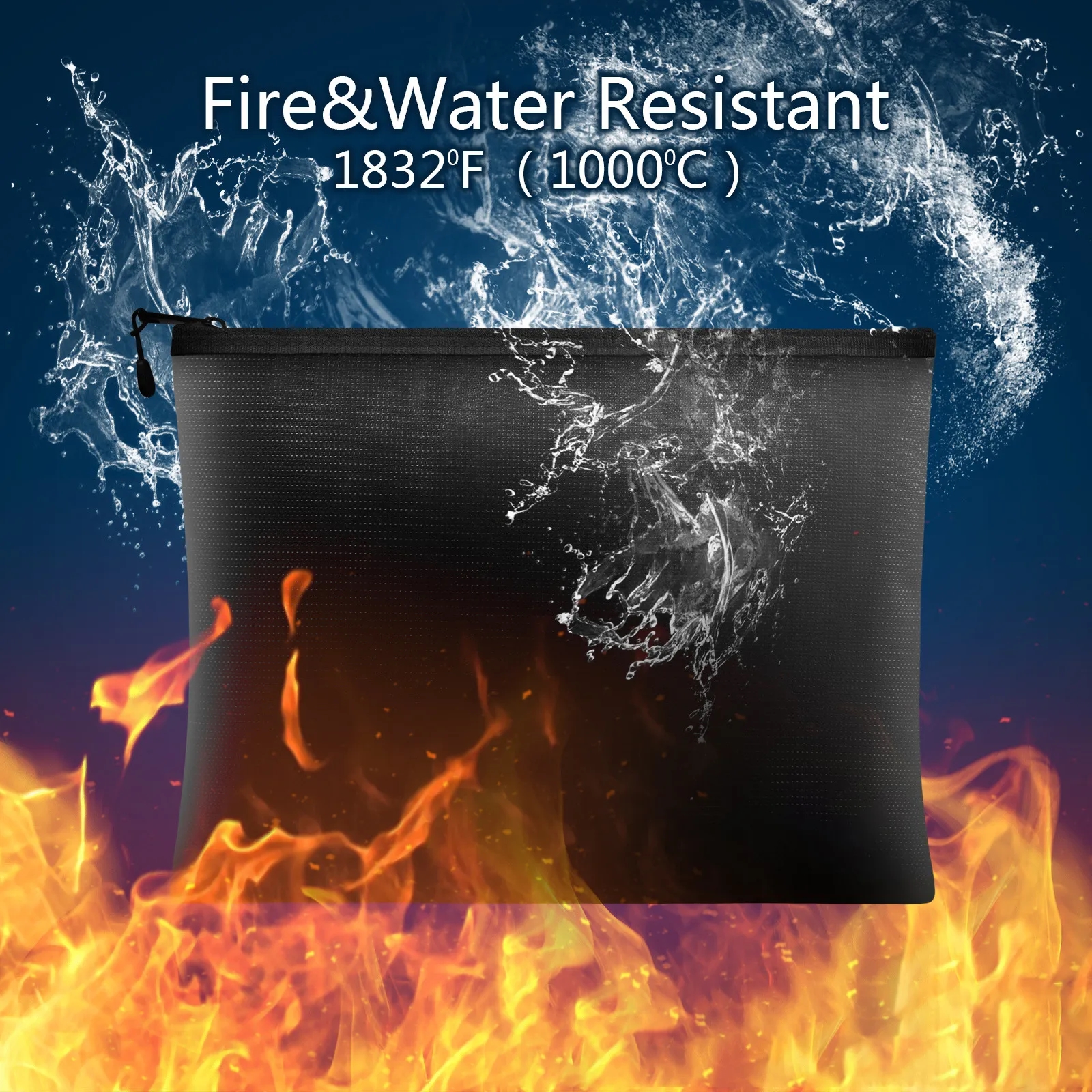 Can withstand temperatures as high as 2000 Fahrenheit.This document pouch brings peace of mind in case of a fire or burglary.