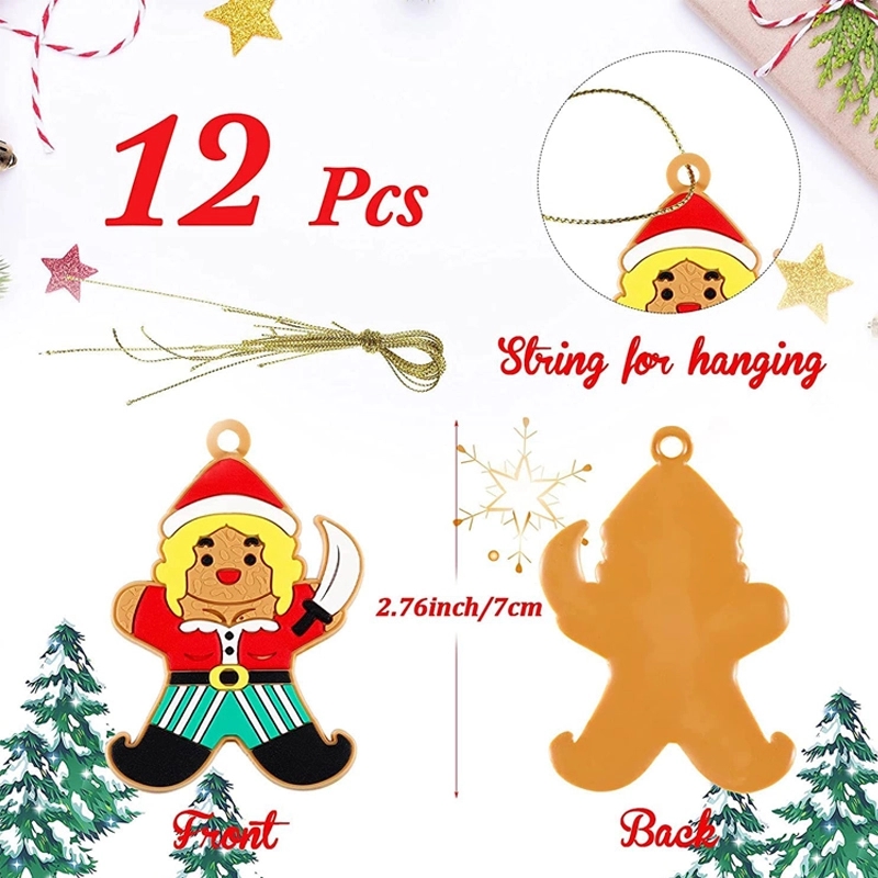 12 Pcs Gingerbread Man Ornaments For Christmas Tree Decoration