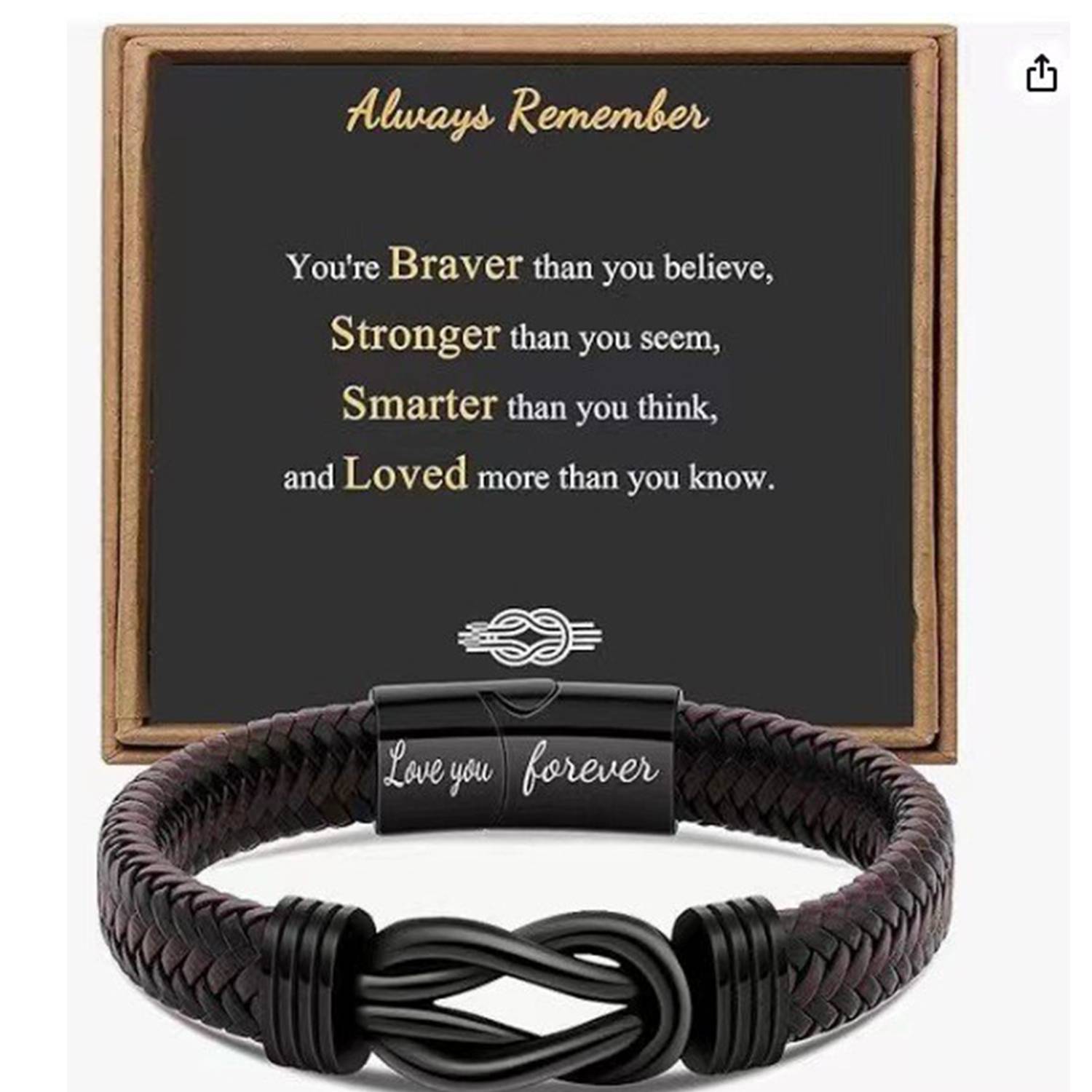 Handmade braided men’s bracelet uses PU leather and stainless steel, with a magnetic clasp customizable engraving as gifts.
