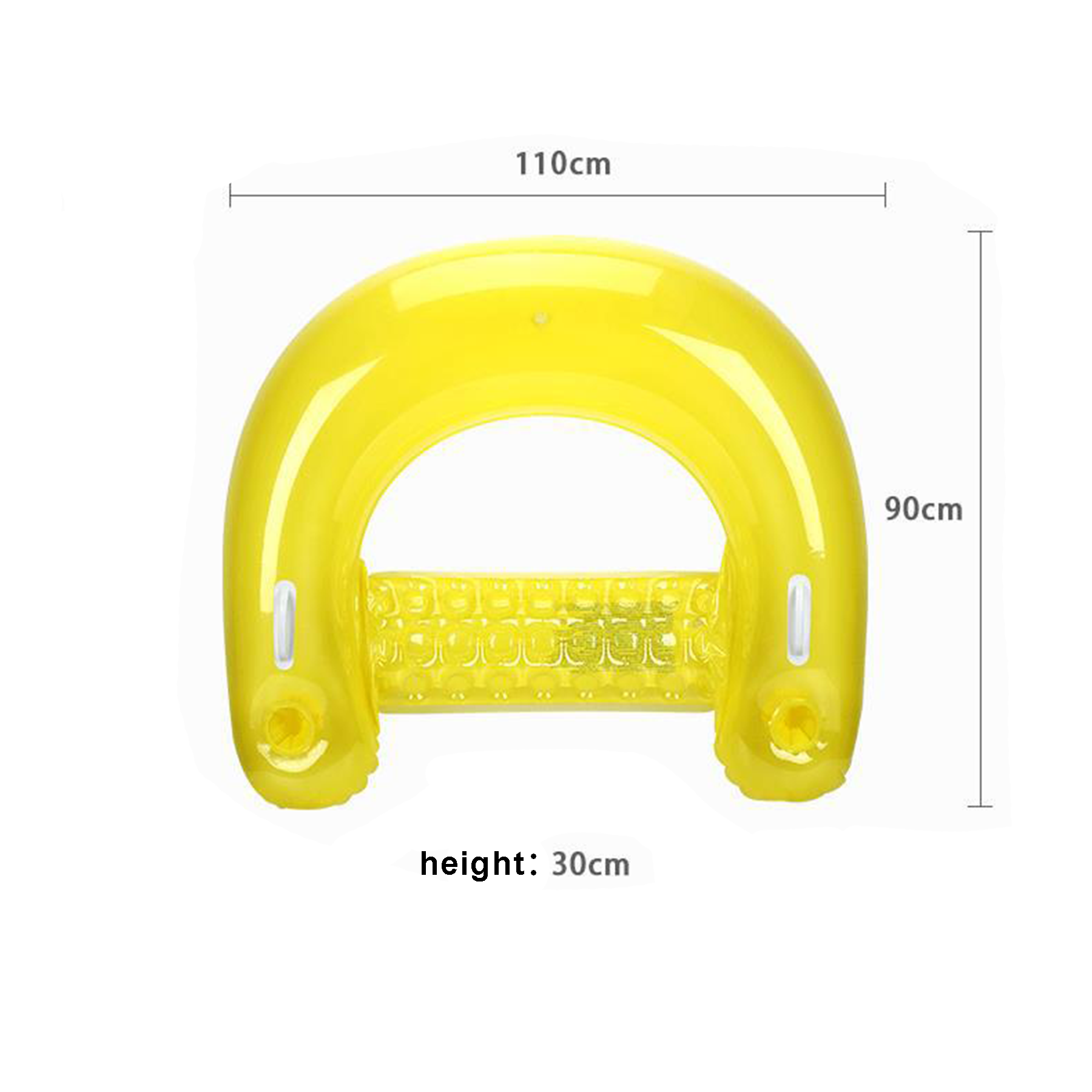 43.3″ x 35.4″ inflatable floating chair with full back support, plush seat, handles and cup holders.