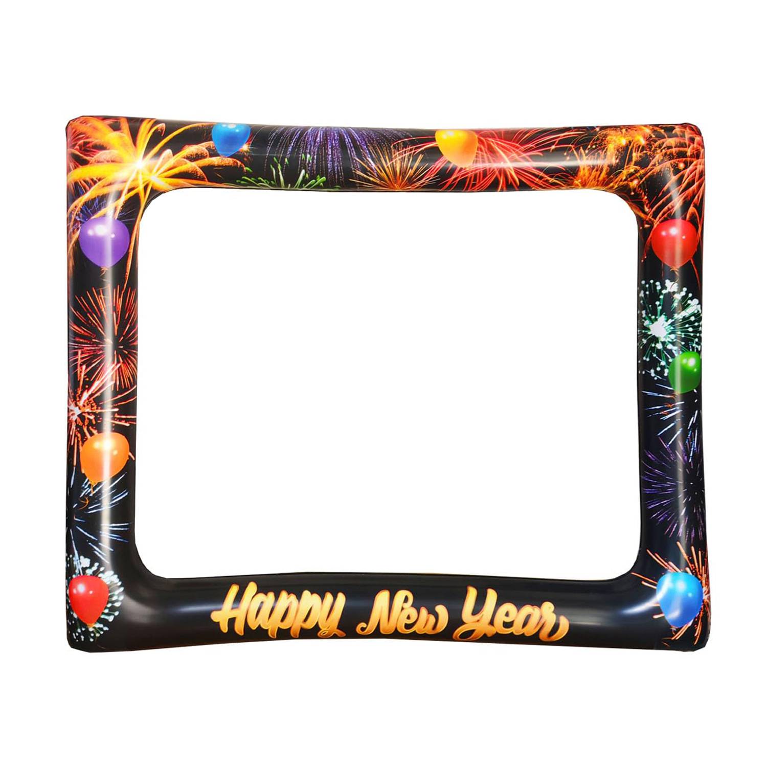 Inflatable PVC New Year photo frame with festive design, durable, waterproof, child-safe, and perfect for parties.
