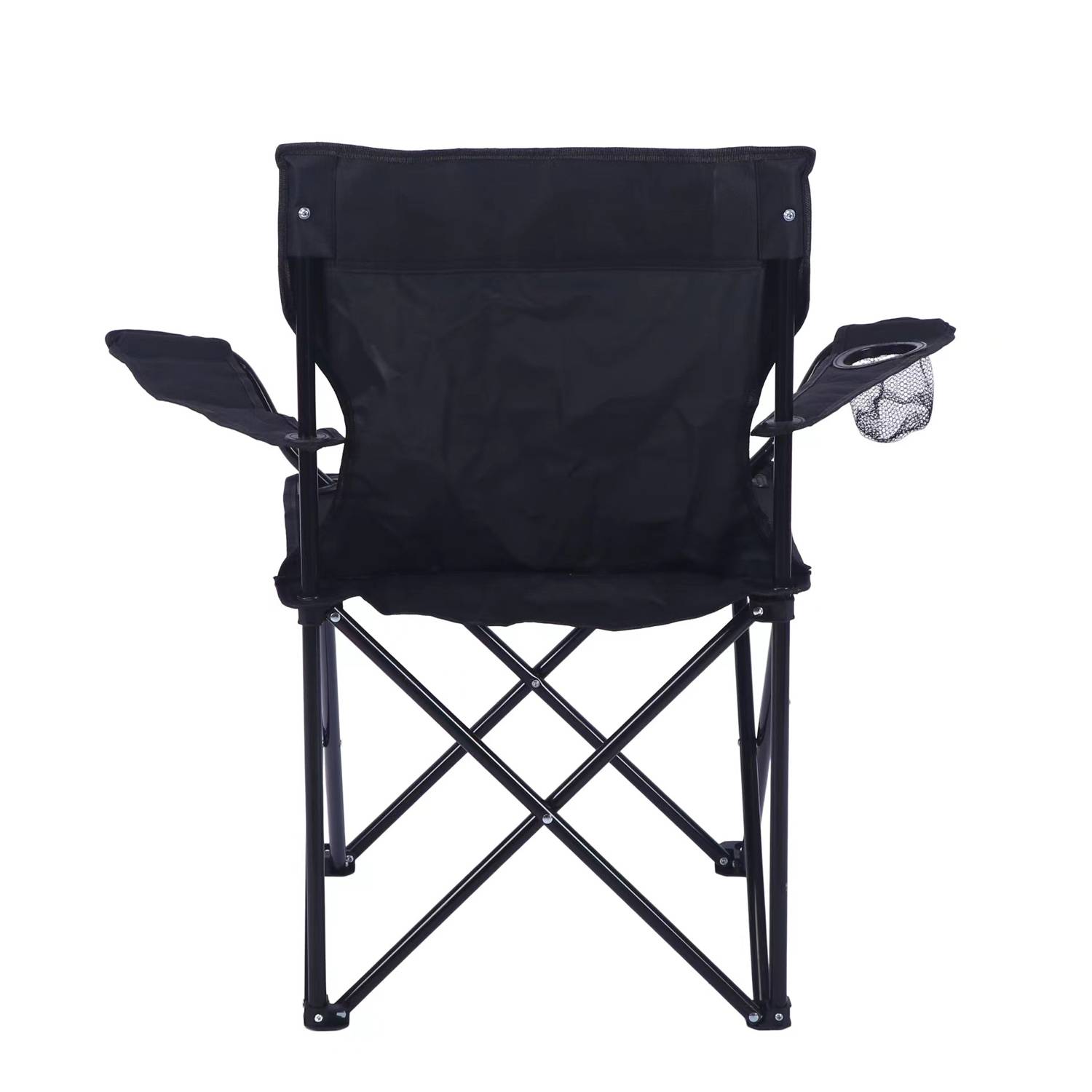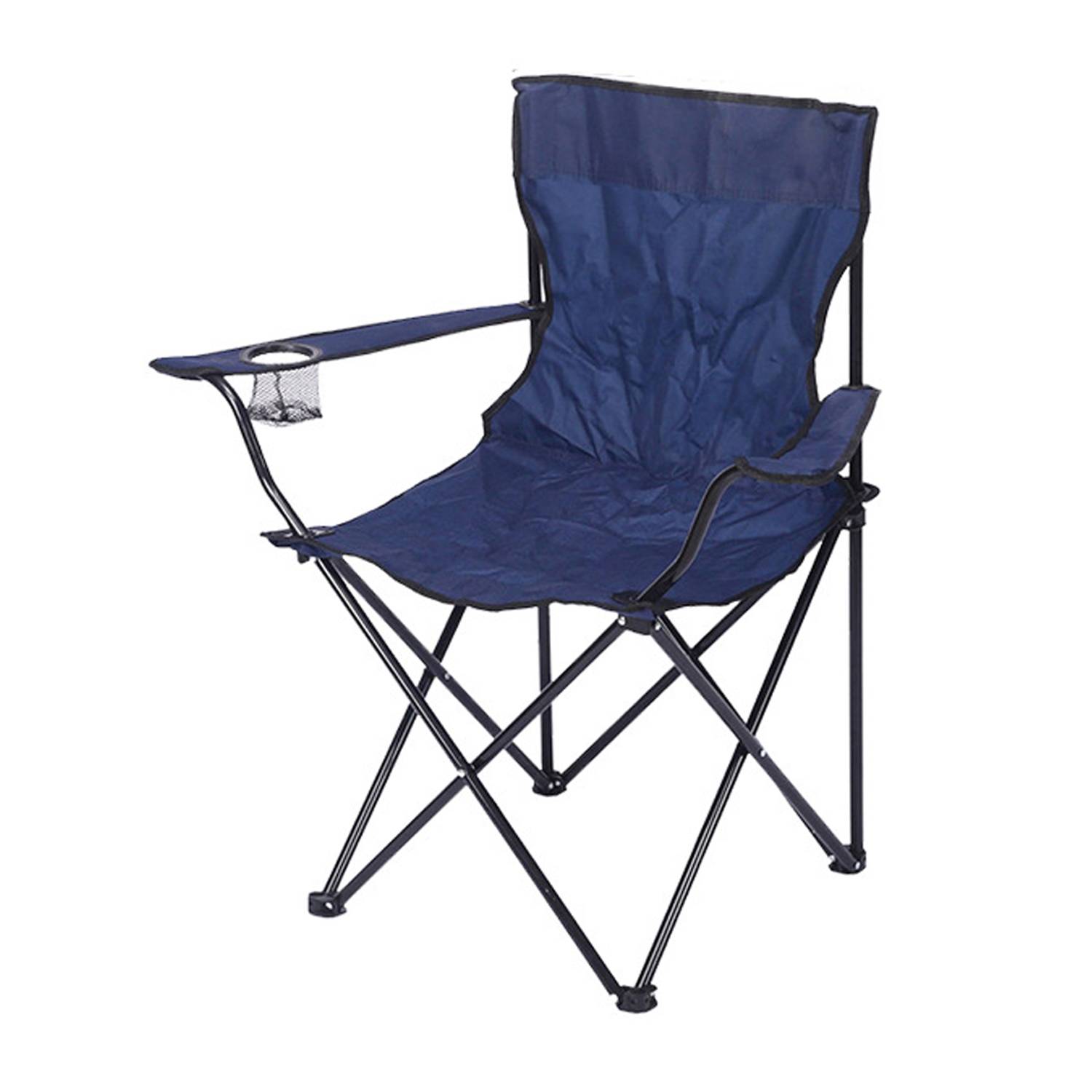 Foldable camping chair with steel frame and 600D fabric, supports 330lbs, ergonomic comfort, ideal for outdoor adventures.