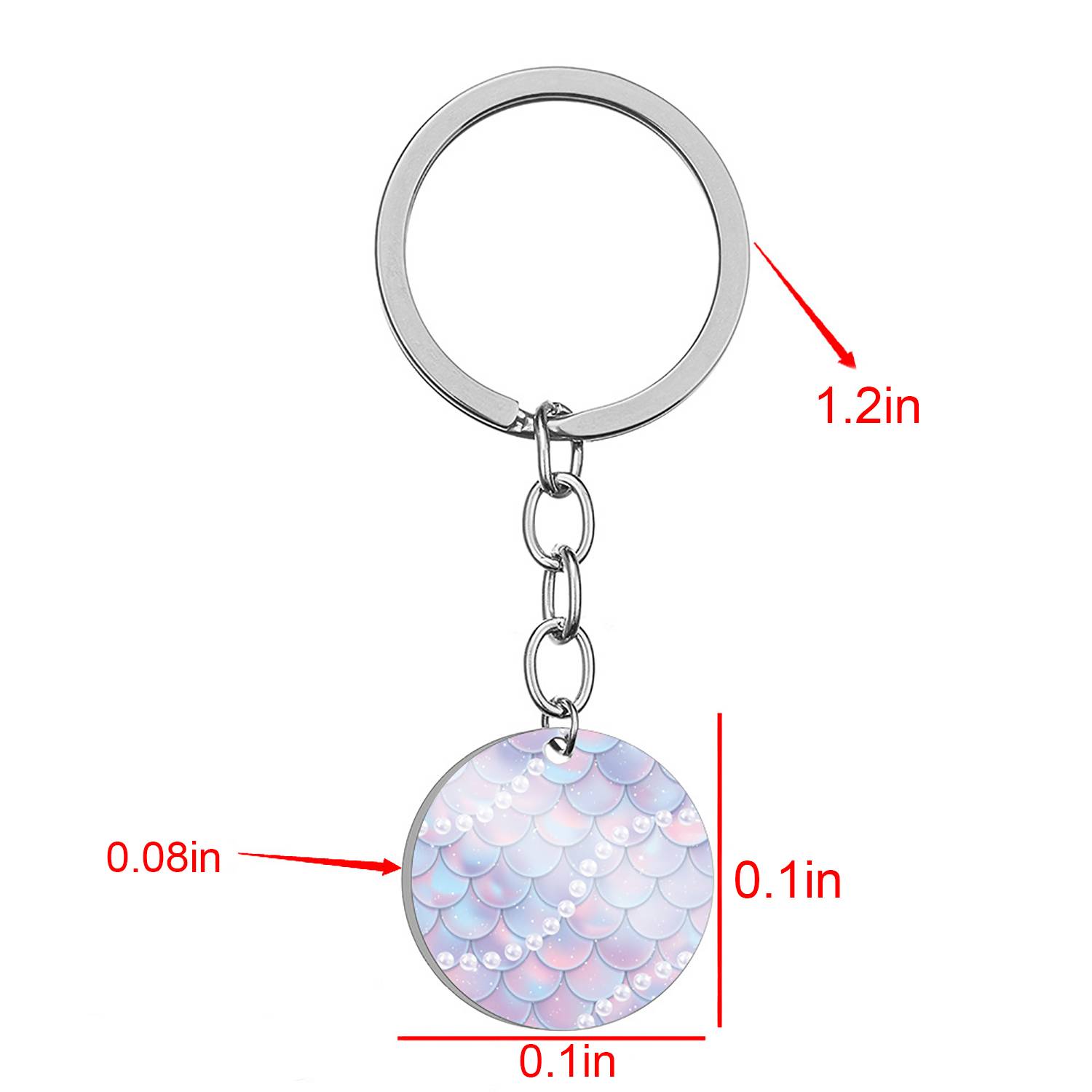 Durable stainless steel keychain with rainbow fish scale design; stylish, lightweight, and perfect for bags or gift giving.