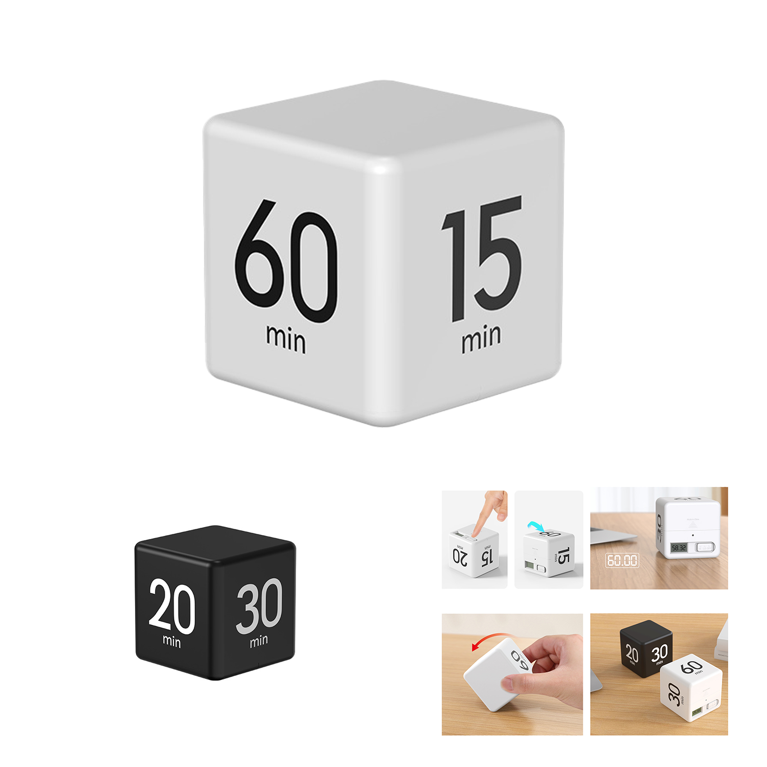 The gravity-sensing time cube timer is simple to use and responsive, cube timer 5-15-30-60 minute preset timer.