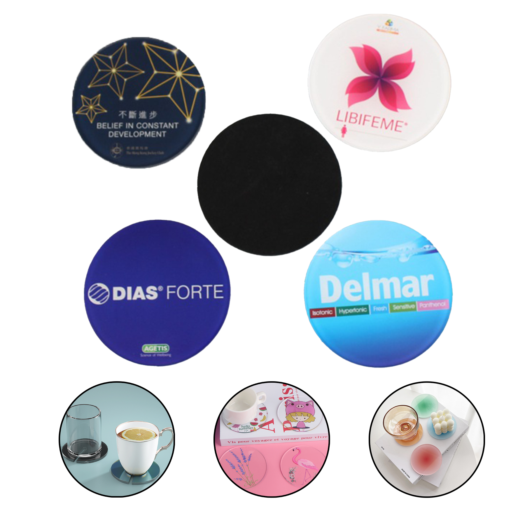 Our bar coasters are made from 0.2″ thick clear sturdy acrylic, they would add some pop colors as a functional bar, table assets.