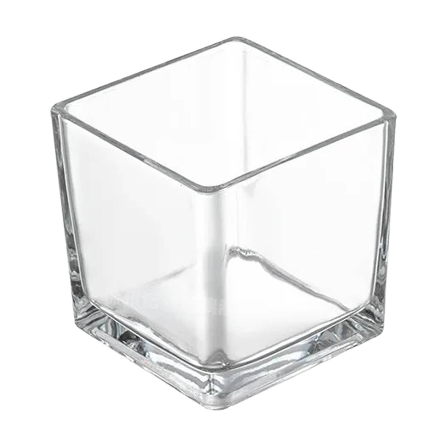 4-inch square glass vase – thick 4mm walls for flowers, succulents or candles.
