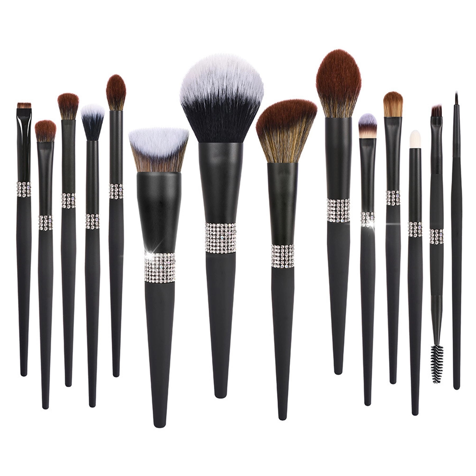 14-band diamond rose gold blush eyeshadow foundation brush set with makeup bag