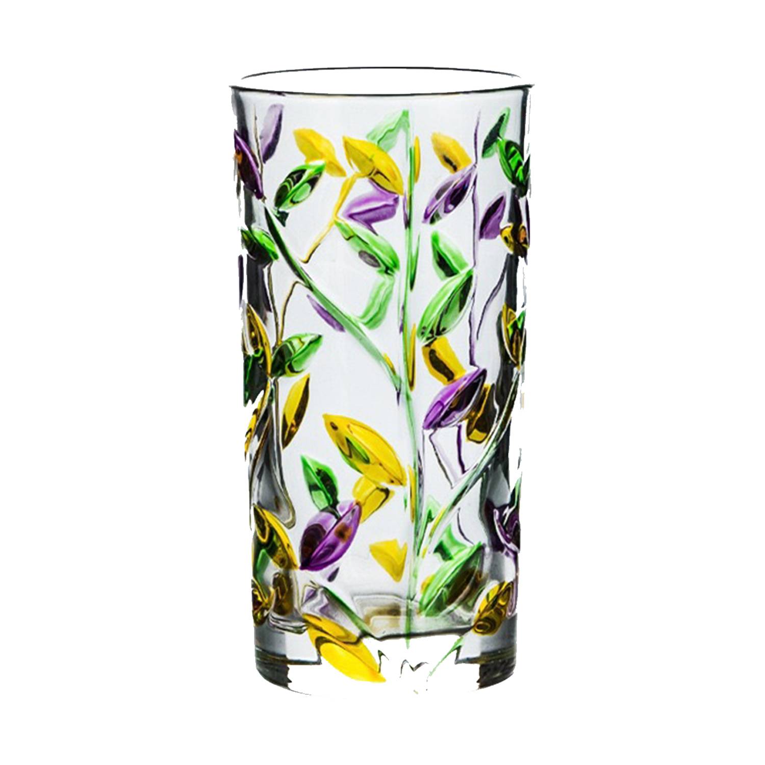 11oz Painted Leaf Pattern Glass Cup