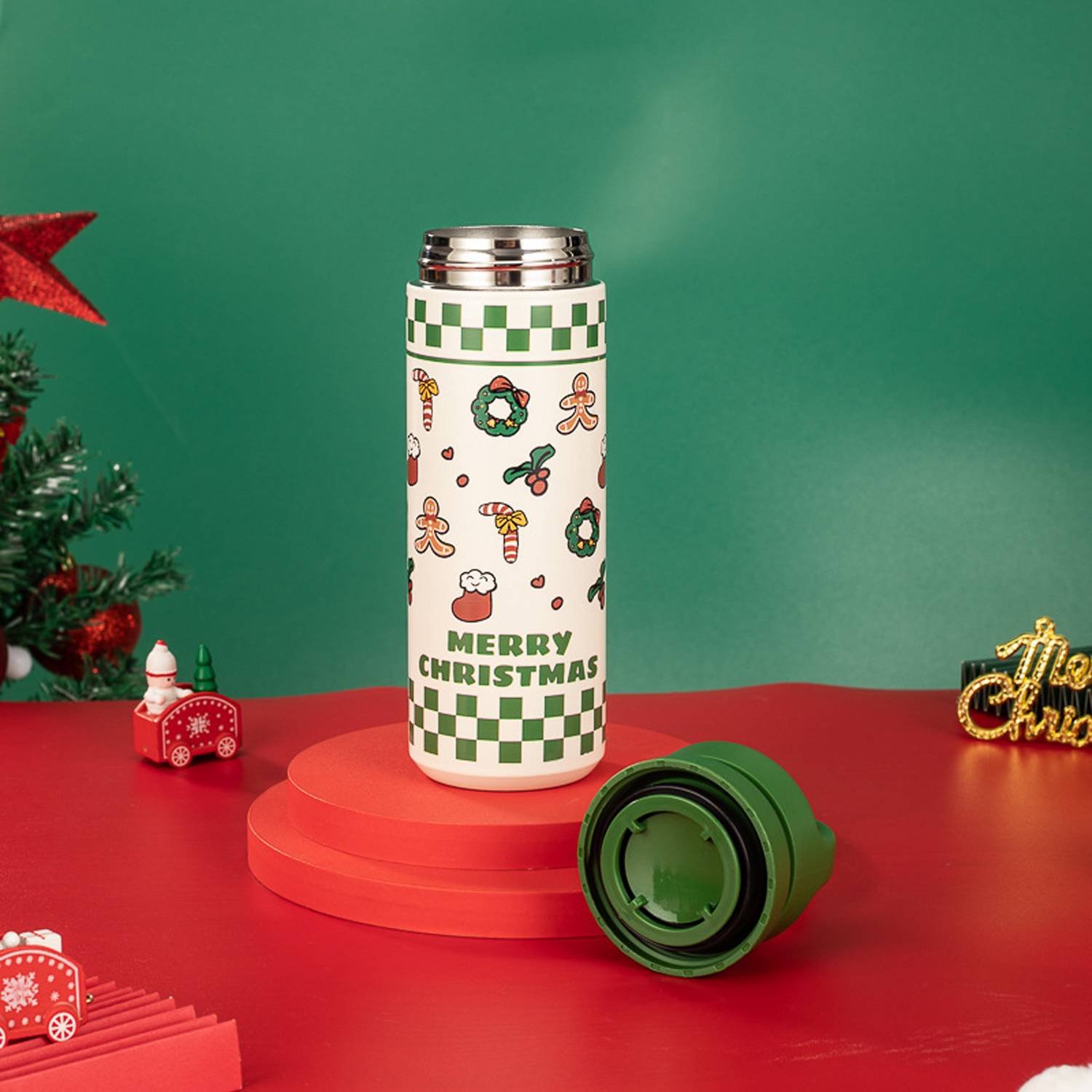 Celebrate the holiday season with this 17oz stainless steel Christmas tumbler featuring vibrant festive patterns like snowflakes, reindeer, and holiday greetings. Made from premium insulated stainless steel, it keeps beverages hot for 6 hours or cold for 12 hours, perfect for cozying up with cocoa or enjoying iced drinks. The spill-proof lid and comfortable handle make it ideal for Christmas parties, winter travel, or as a decorative seasonal accessory.
