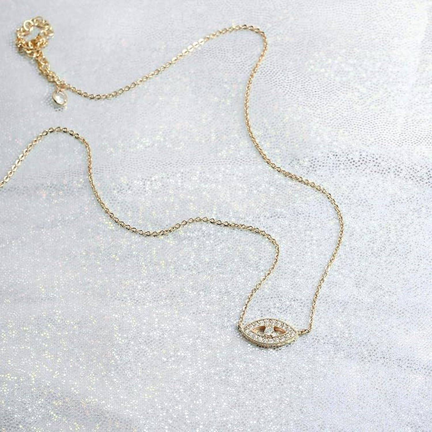 14K gold plated evil eye necklace, 16.5’’ length + 2’’ chain. Elegant gift for various occasions.