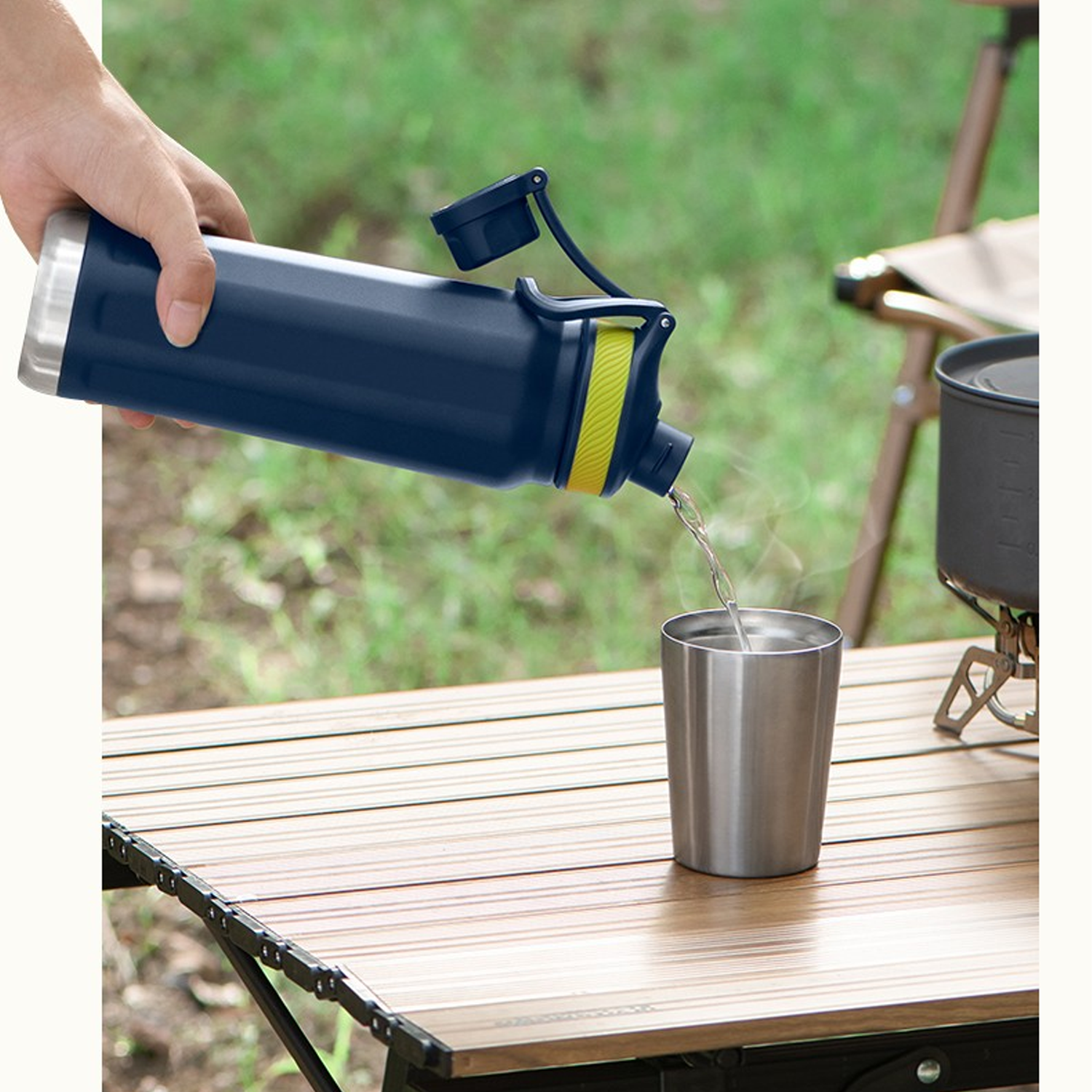 Stainless steel water bottle is BPA-free, toxic-free, and keeps ice water cold for 12 hours, hot water warm for 8h.
