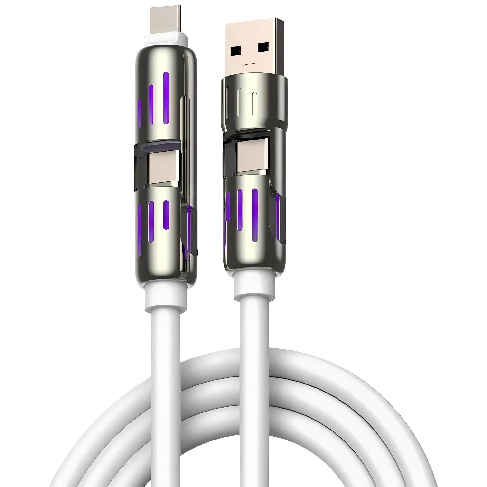 240W 4-in-1 Fast Charging Cable with LED – TPE Material