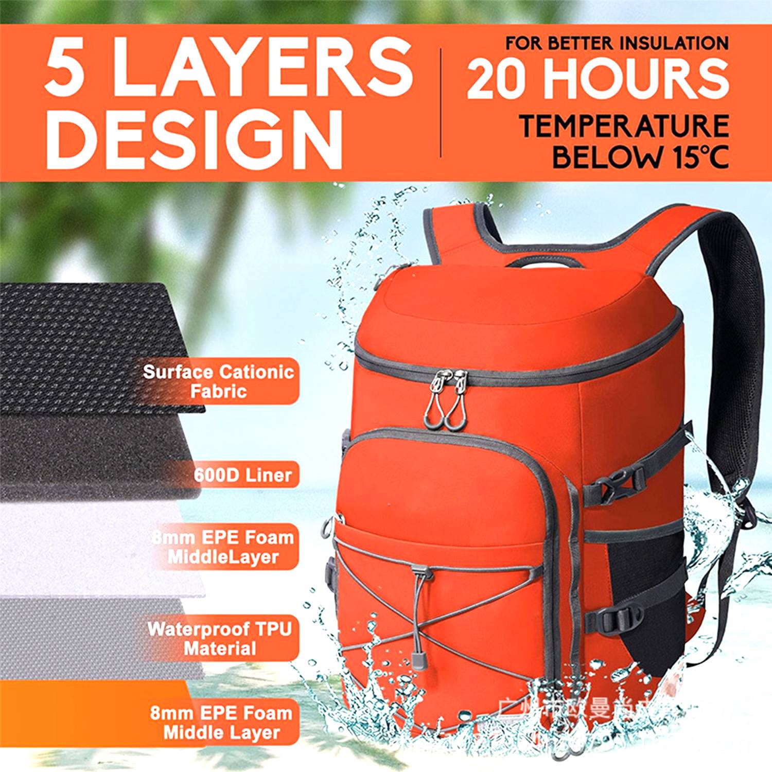 25L insulated Oxford backpack keeps food/drinks cold 6-20hrs. Leakproof, lightweight & durable for picnics/camping.Comfort straps.