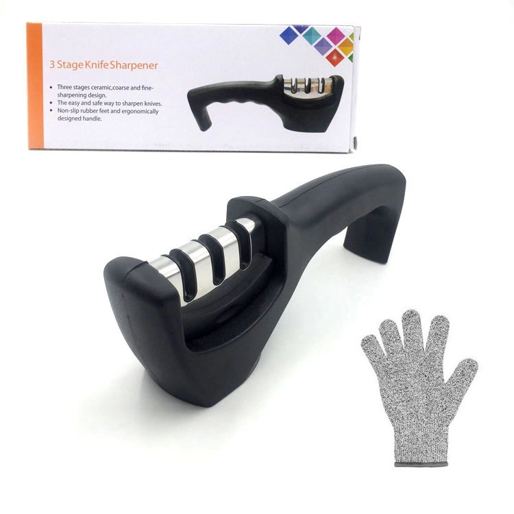 3-Stage Knife Sharpener W/ Cut Resistant Glove