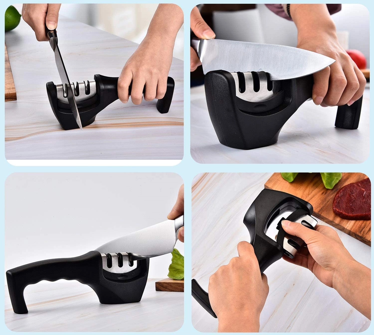 Restore kitchen knives with 3 sharpening stages