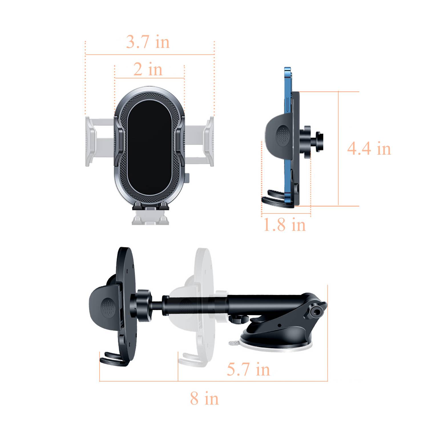 This 360 degree Adjustable Suction Cup Car Phone Holder provides a secure and versatile mounting solution for your vehicle. Constructed from high-quality ABS plastic, soft silicone, and reinforced metal components, it offers durability and reliable performance. Measuring approximately, it features a powerful suction cup that adheres firmly to your dashboard or windshield, along with flexible silicone grips that hold phones securely without scratching.