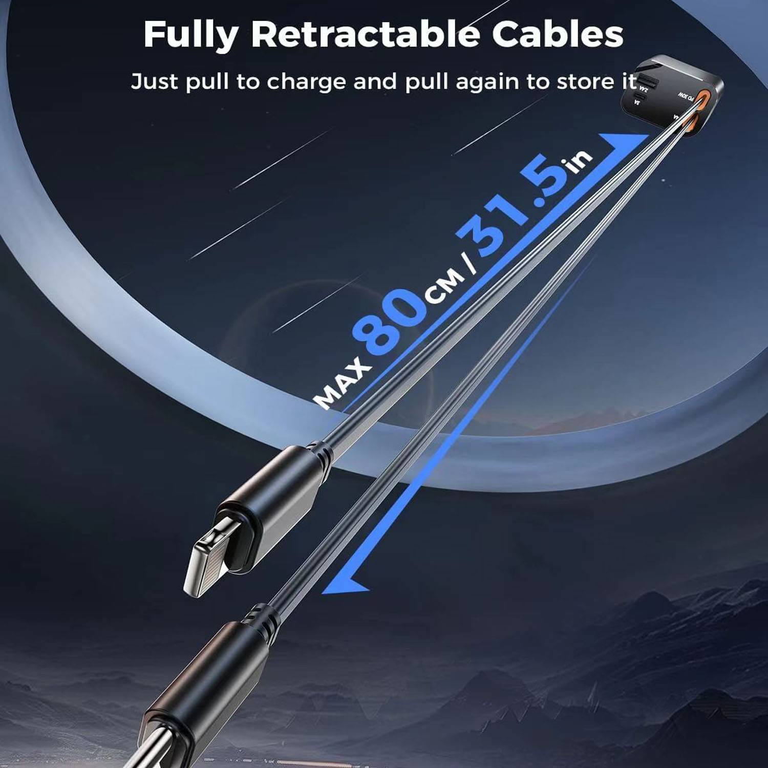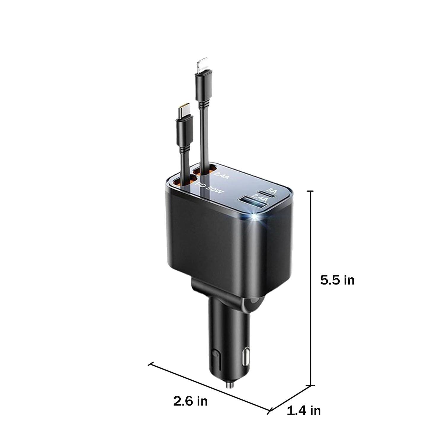 Made of durable ABS, this retractable car charger features a compact design with a 31.5-inch extendable cable to keep your car tidy and cords untangled. With 4 ports for efficient charging, it supports multiple devices at once—perfect for family road trips or business travel. Its low-profile look blends seamlessly into your car interior, while a shock-resistant build ensures stable charging on bumpy roads. A must-have for everyday drivers and adventure lovers.